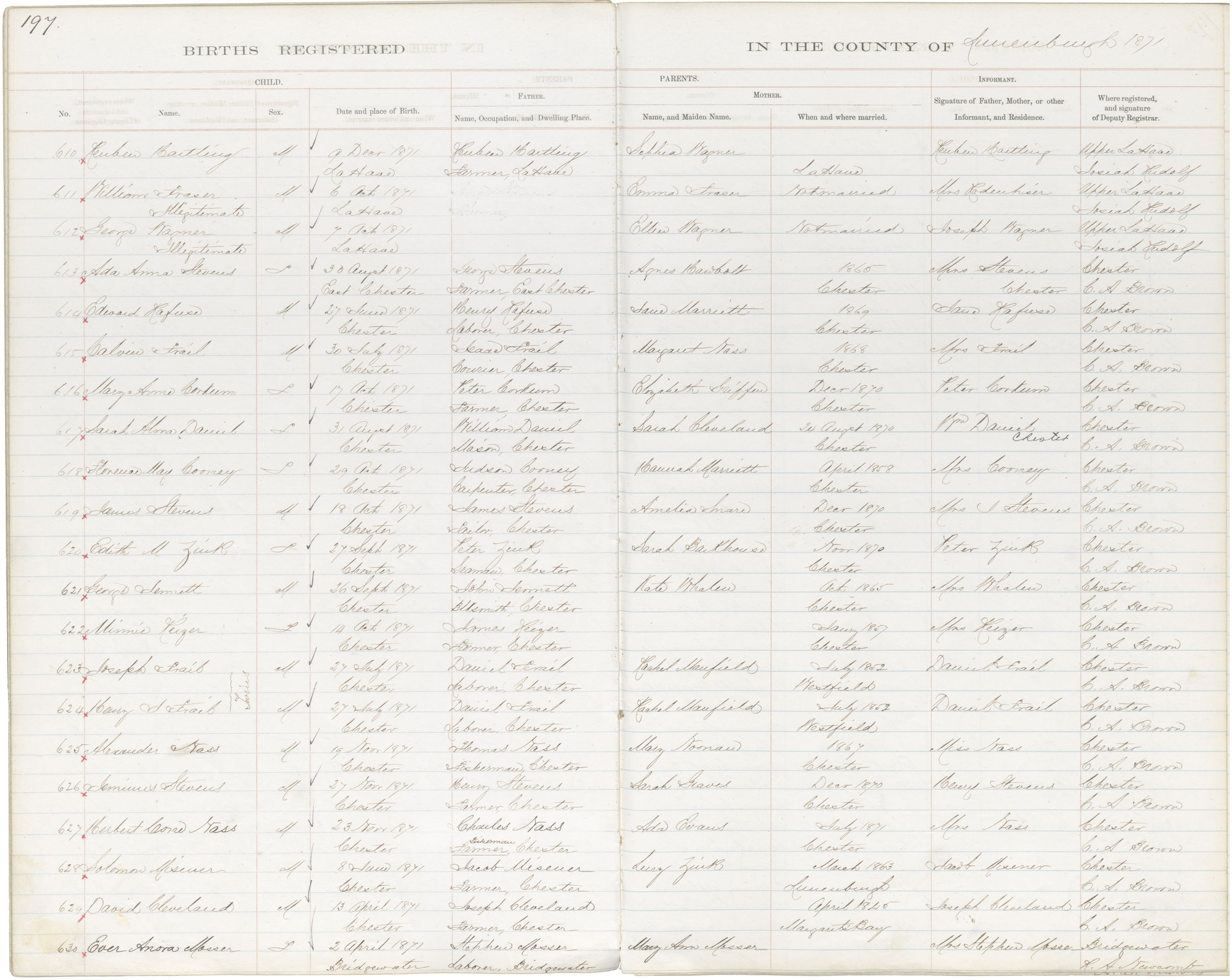 Male Birth Registration: Year: 1871 book: 1817 page: 197 number: 610
