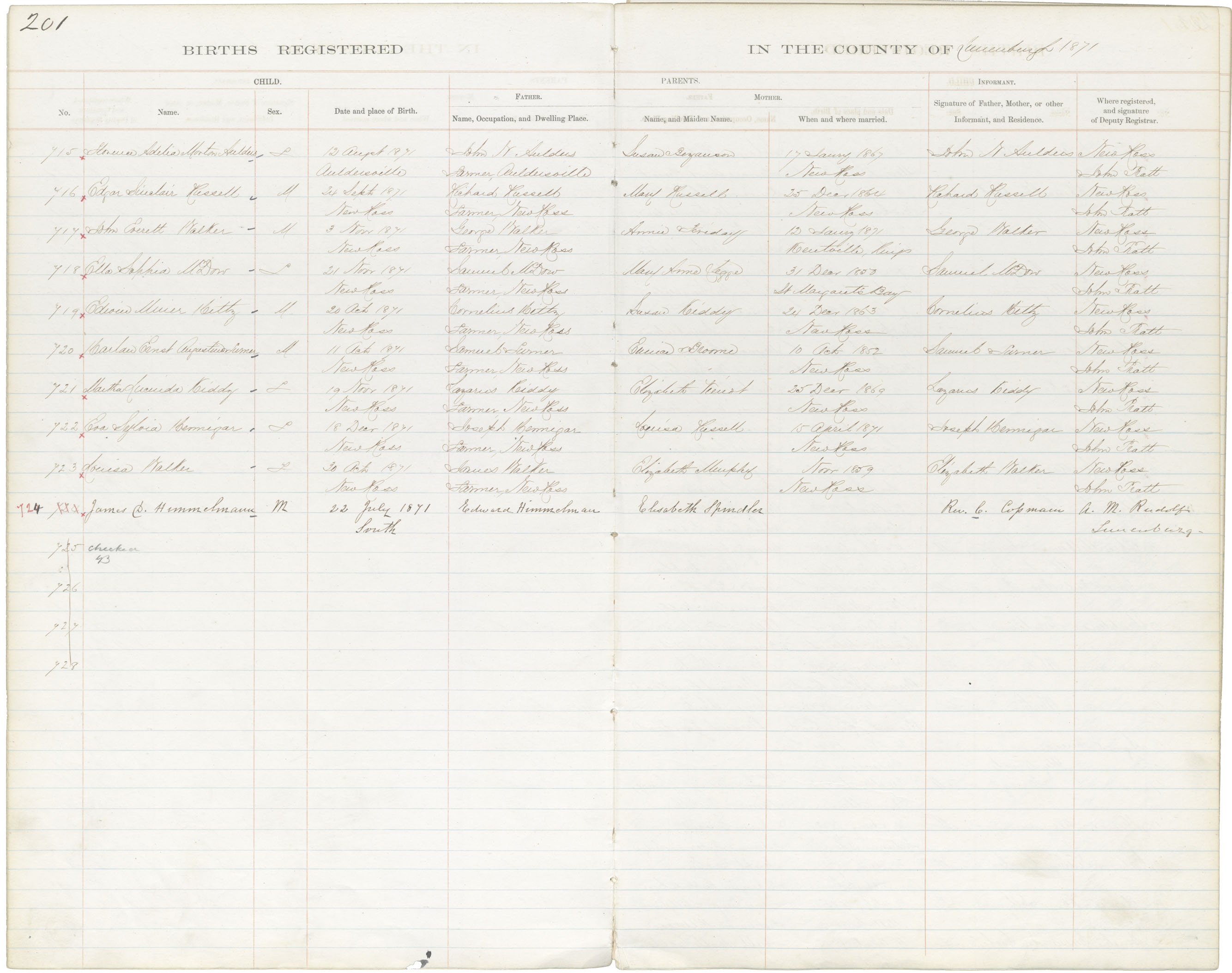 Female Birth Registration: Year: 1871 book: 1817 page: 201 number: 715