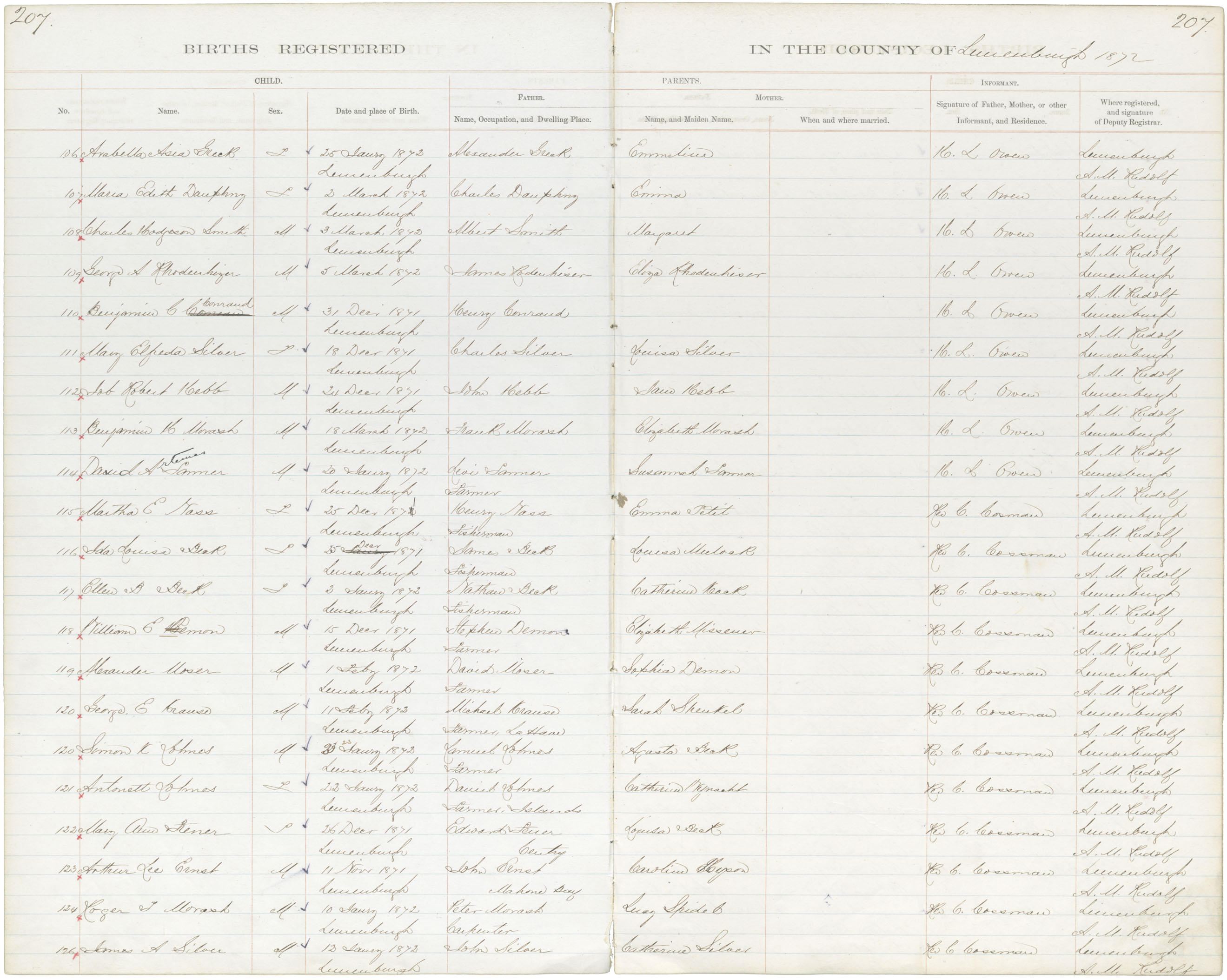 Birth Registration: Year: 1872 book: 1817 page: 207 number: 106