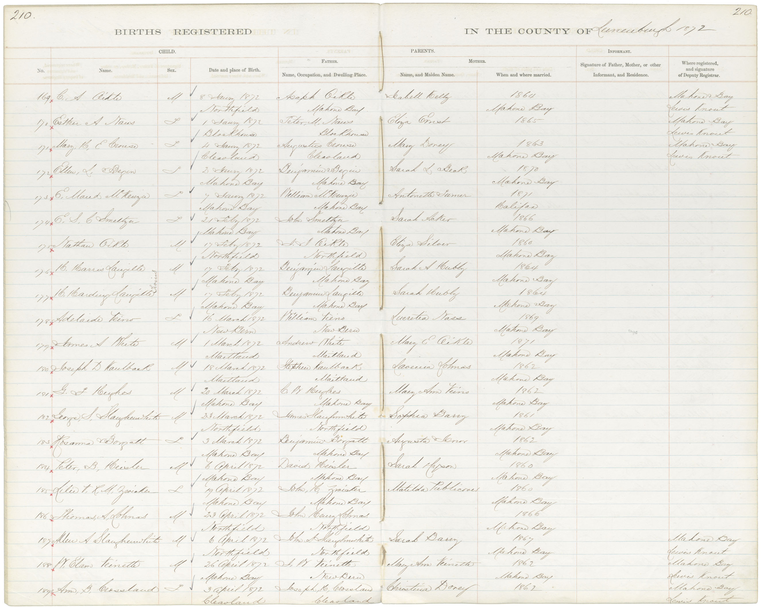 Birth Registration: Year: 1872 book: 1817 page: 210 number: 169