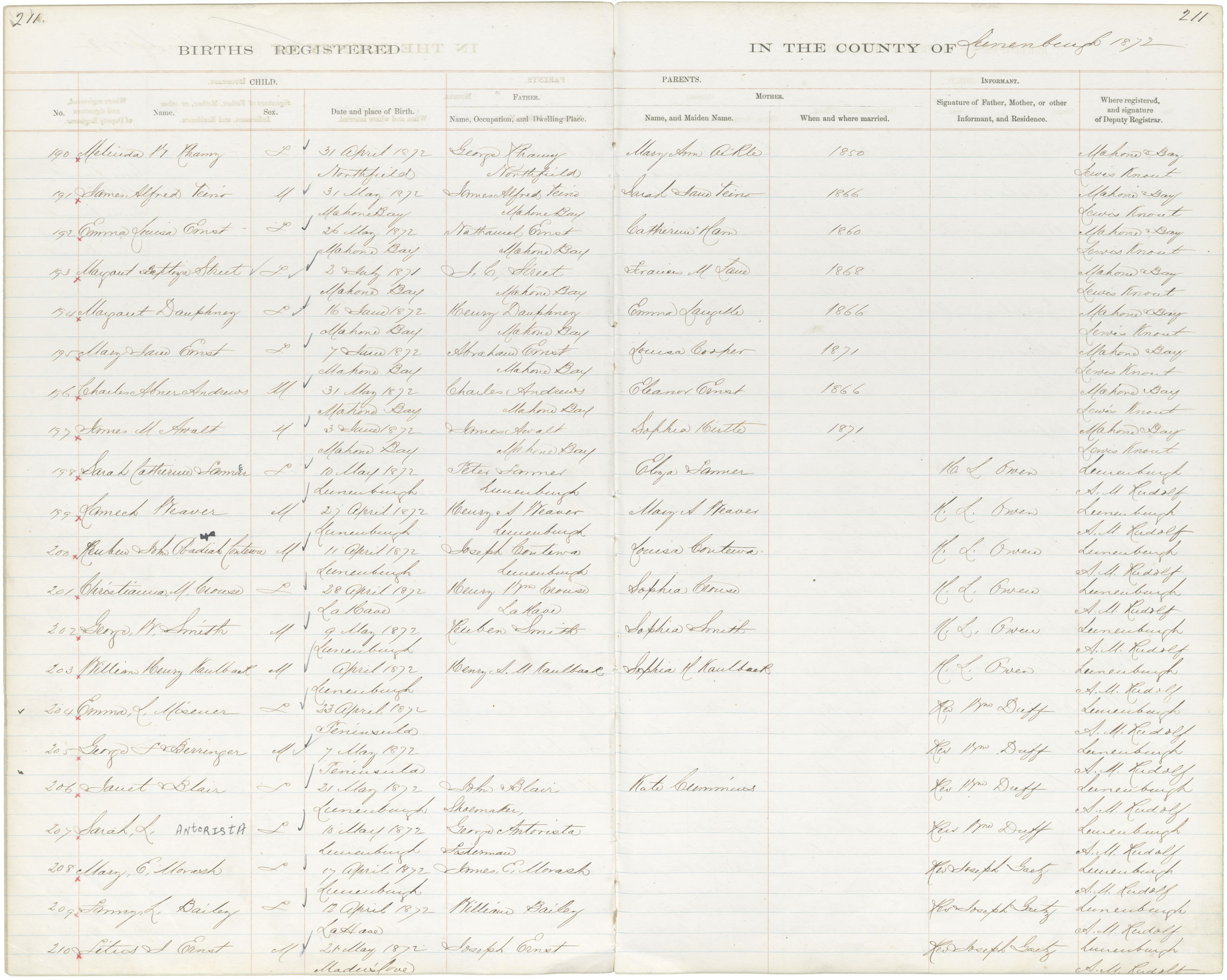 Birth Registration: Year: 1872 book: 1817 page: 211 number: 190