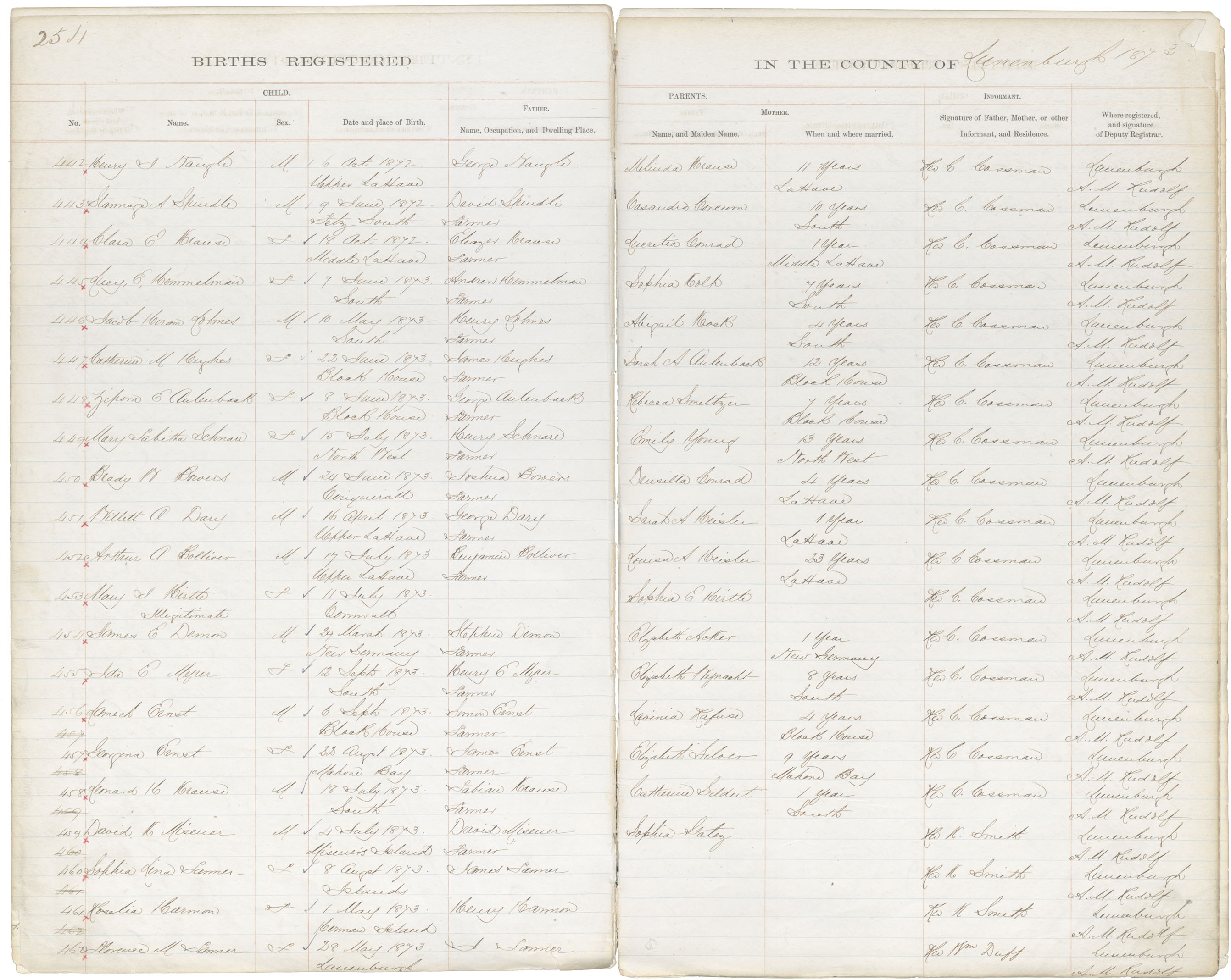 Birth Registration: Year: 1873 book: 1817 page: 254 number: 462