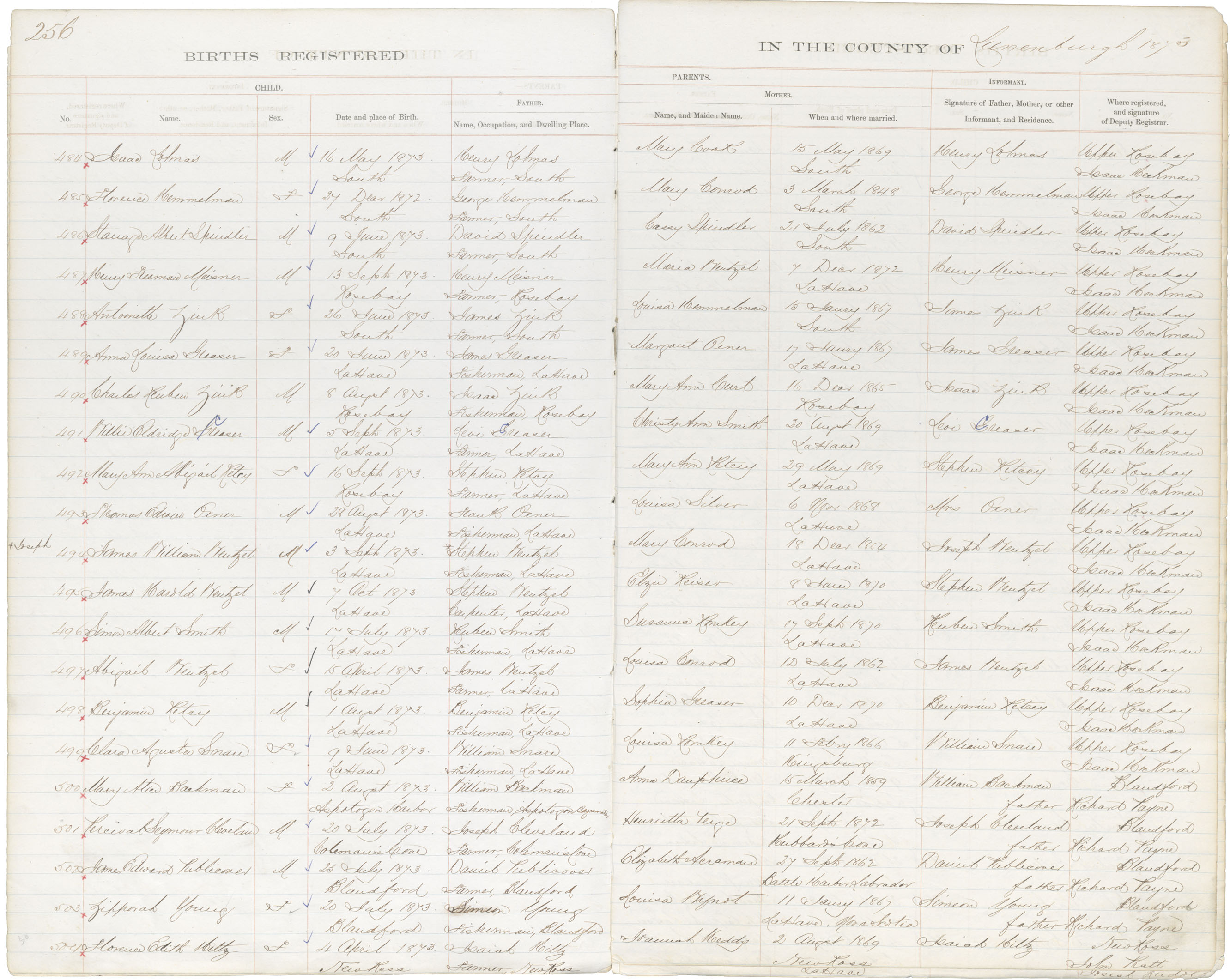 Female Birth Registration: Year: 1873 book: 1817 page: 256 number: 504