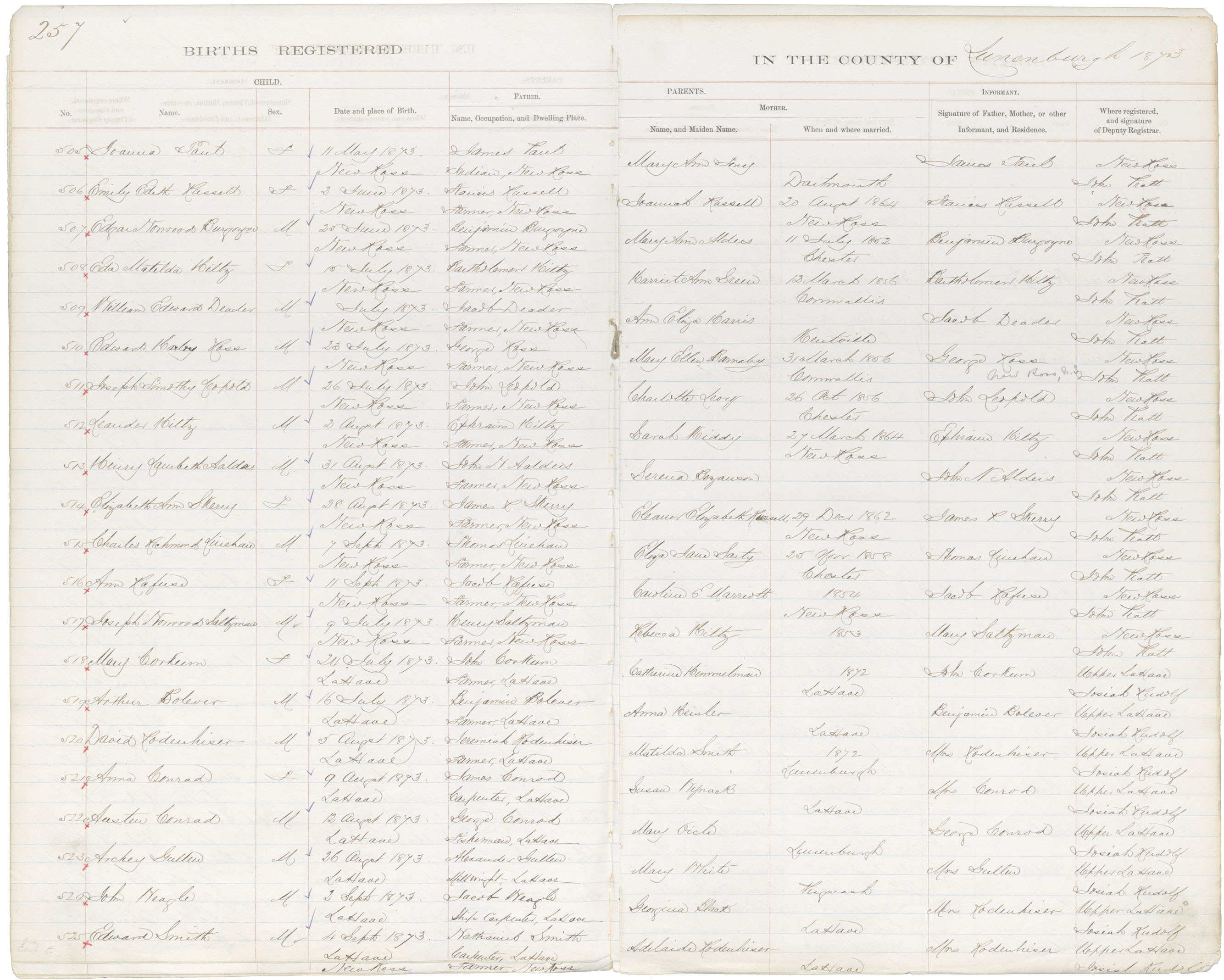 Birth Registration: Year: 1873 book: 1817 page: 257 number: 525
