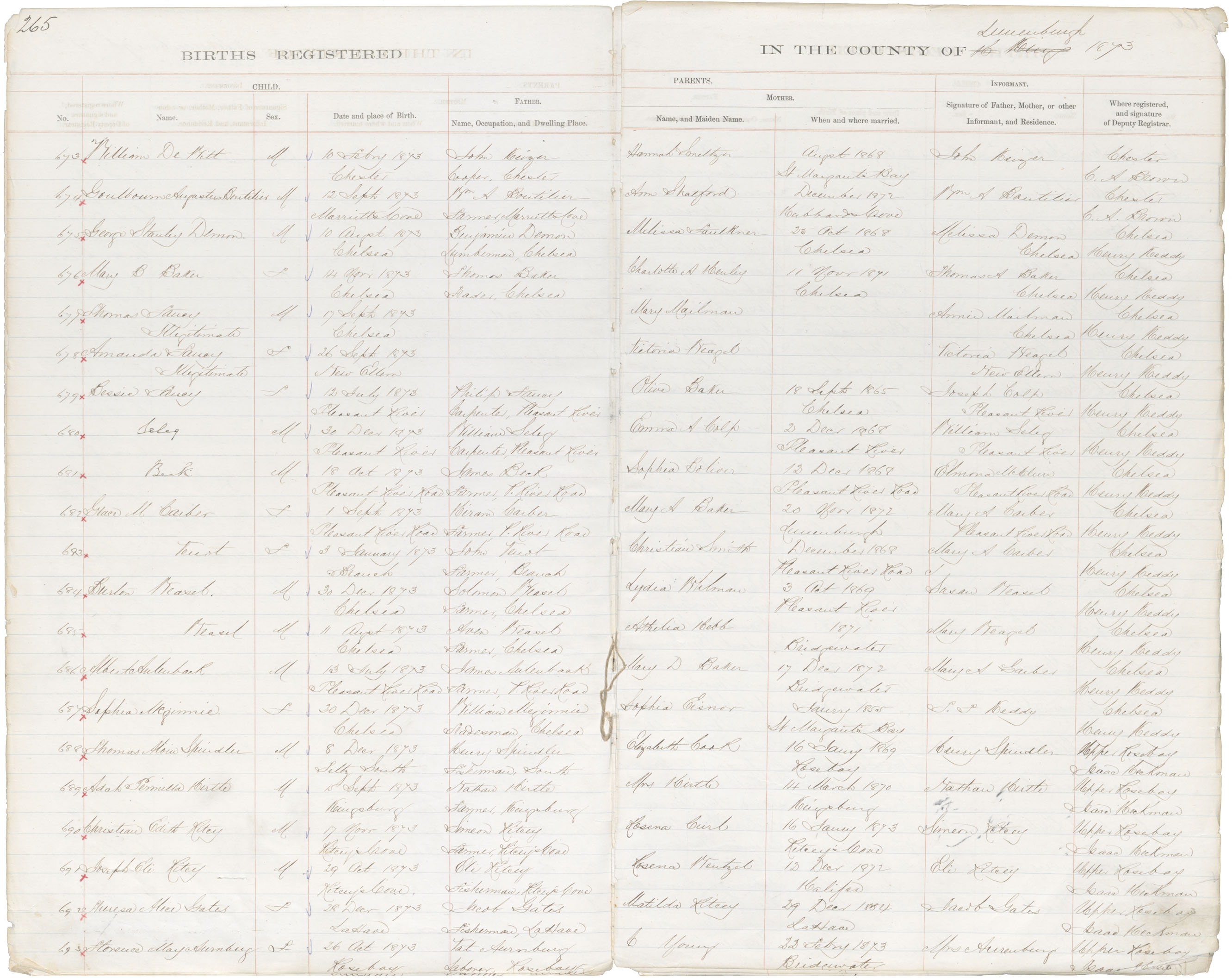 Male Birth Registration: Year: 1873 book: 1817 page: 265 number: 673