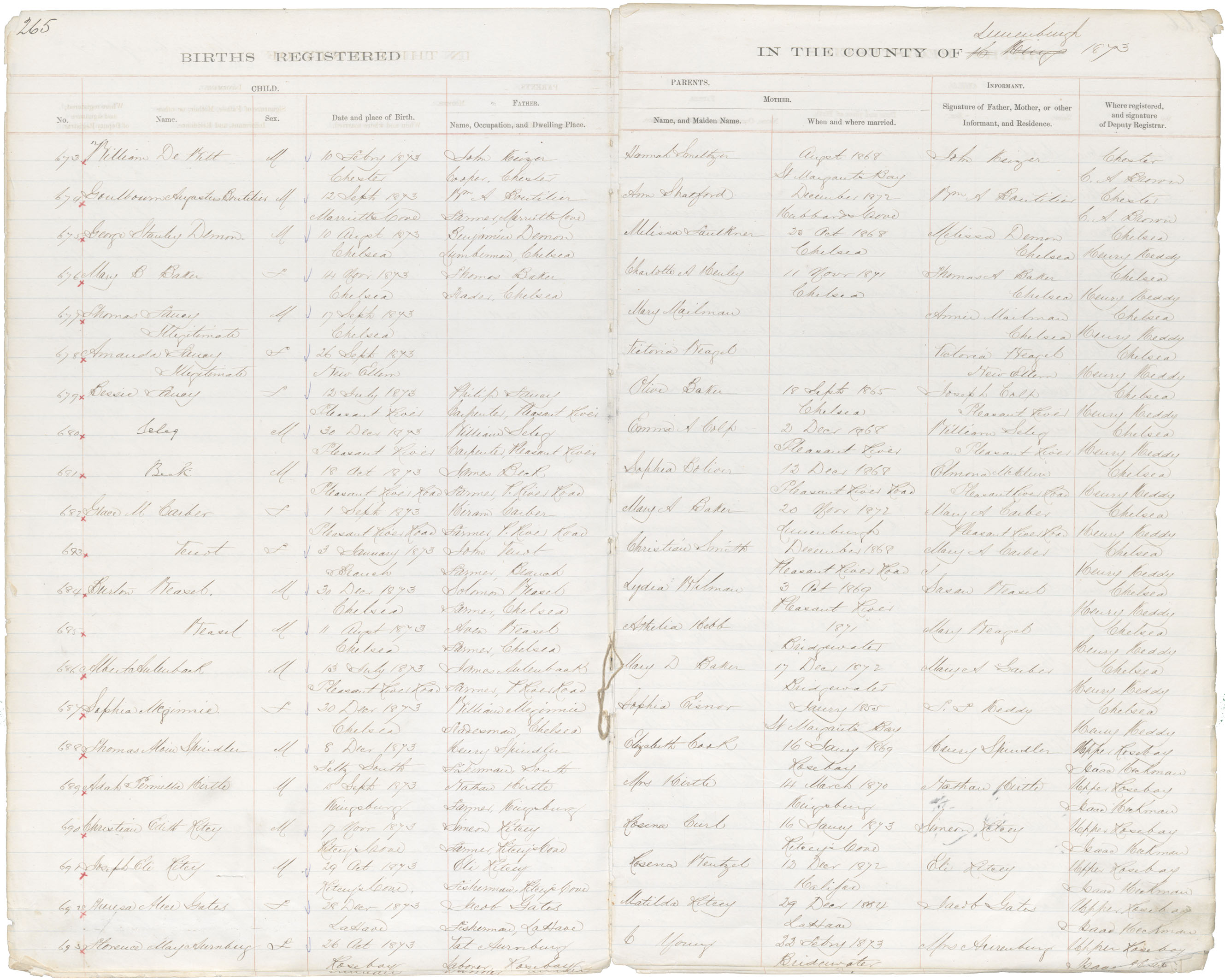 Male Birth Registration: Year: 1873 book: 1817 page: 265 number: 691