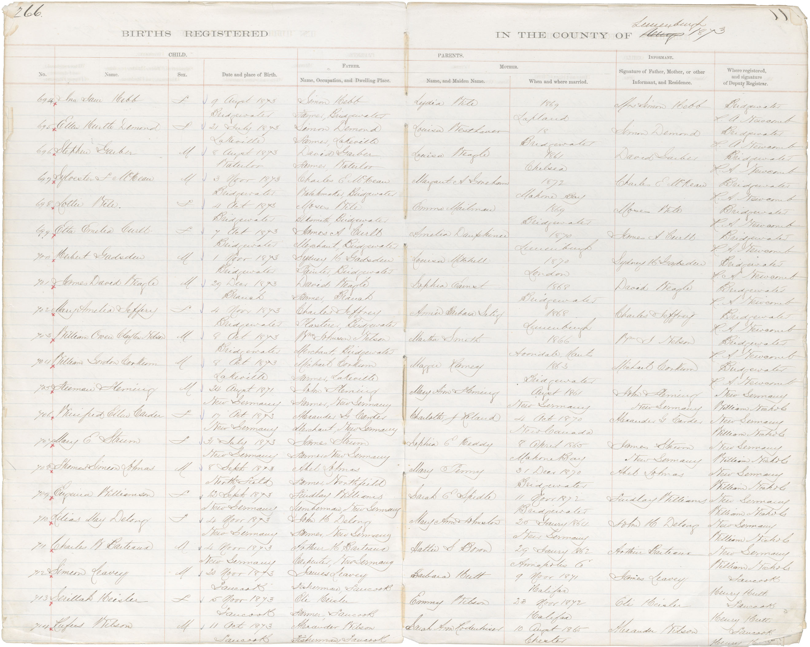 Birth Registration: Year: 1873 book: 1817 page: 266 number: 694