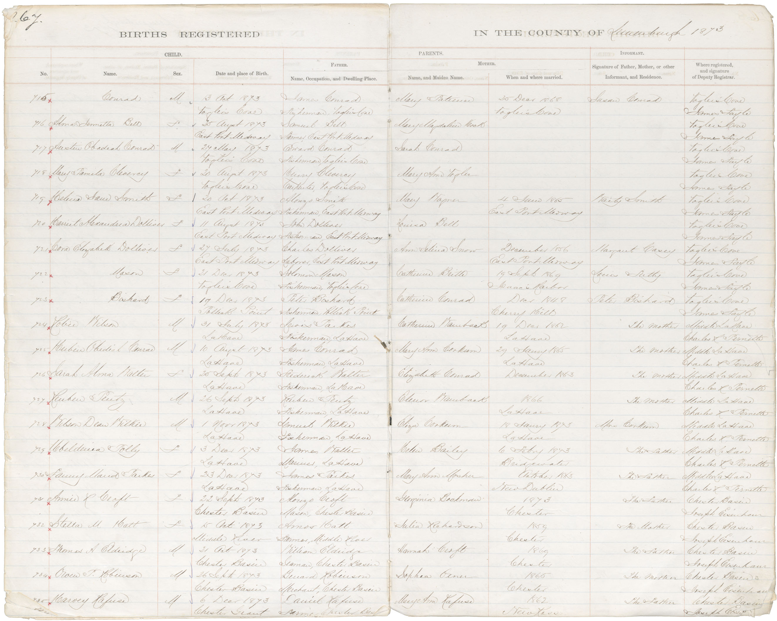 Male Birth Registration: Year: 1873 book: 1817 page: 267 number: 715