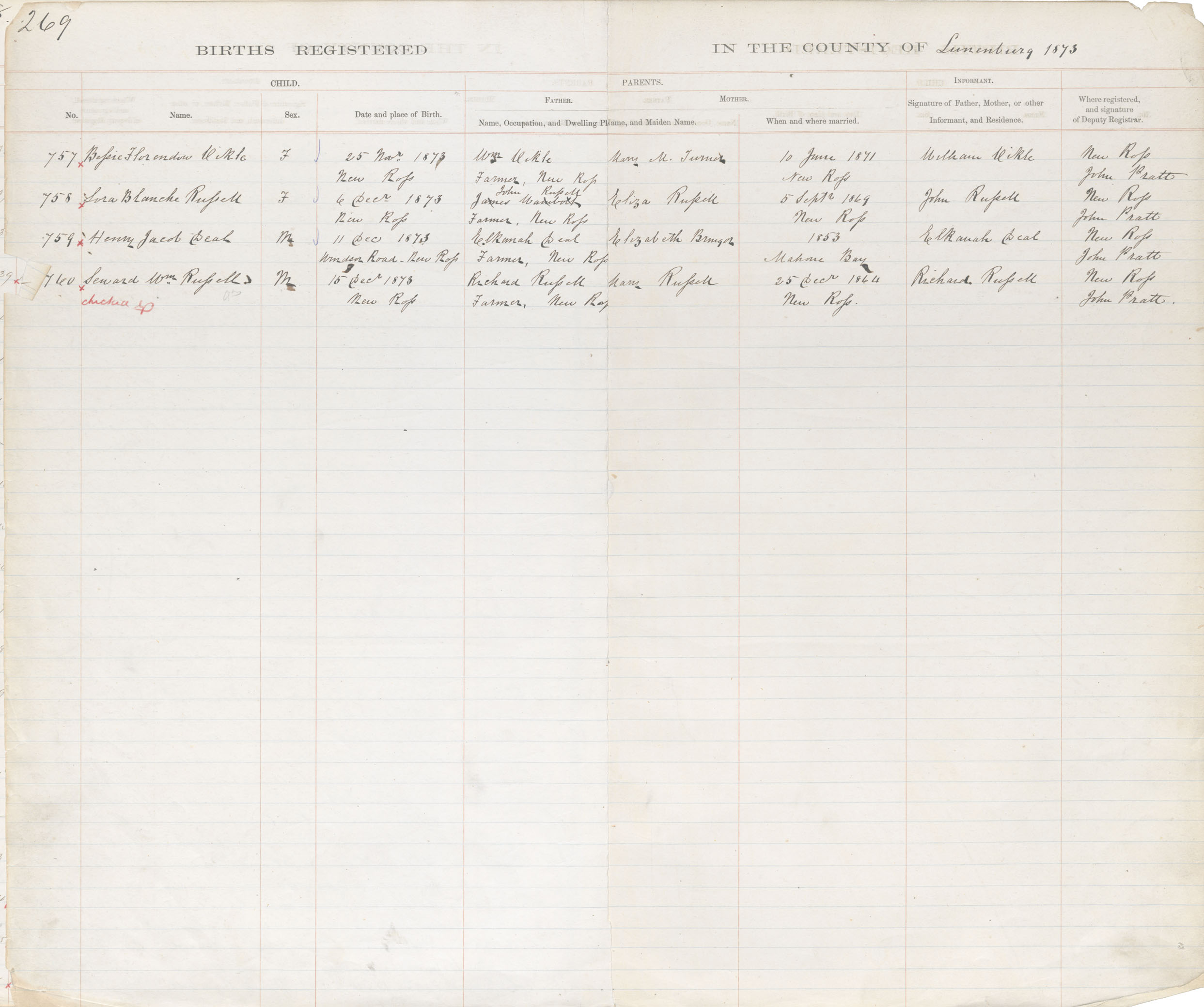 Birth Registration: Year: 1873 book: 1817 page: 269 number: 757