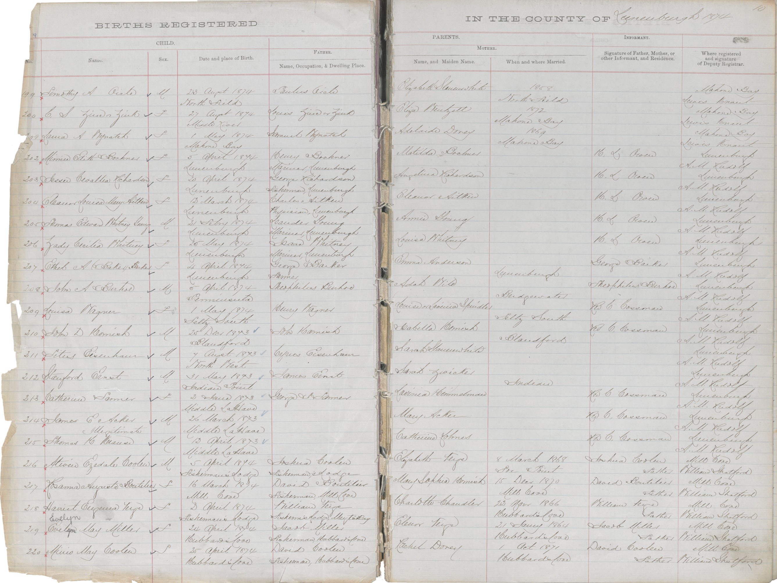 Birth Registration: Year: 1874 book: 1817 page: 279 number: 220