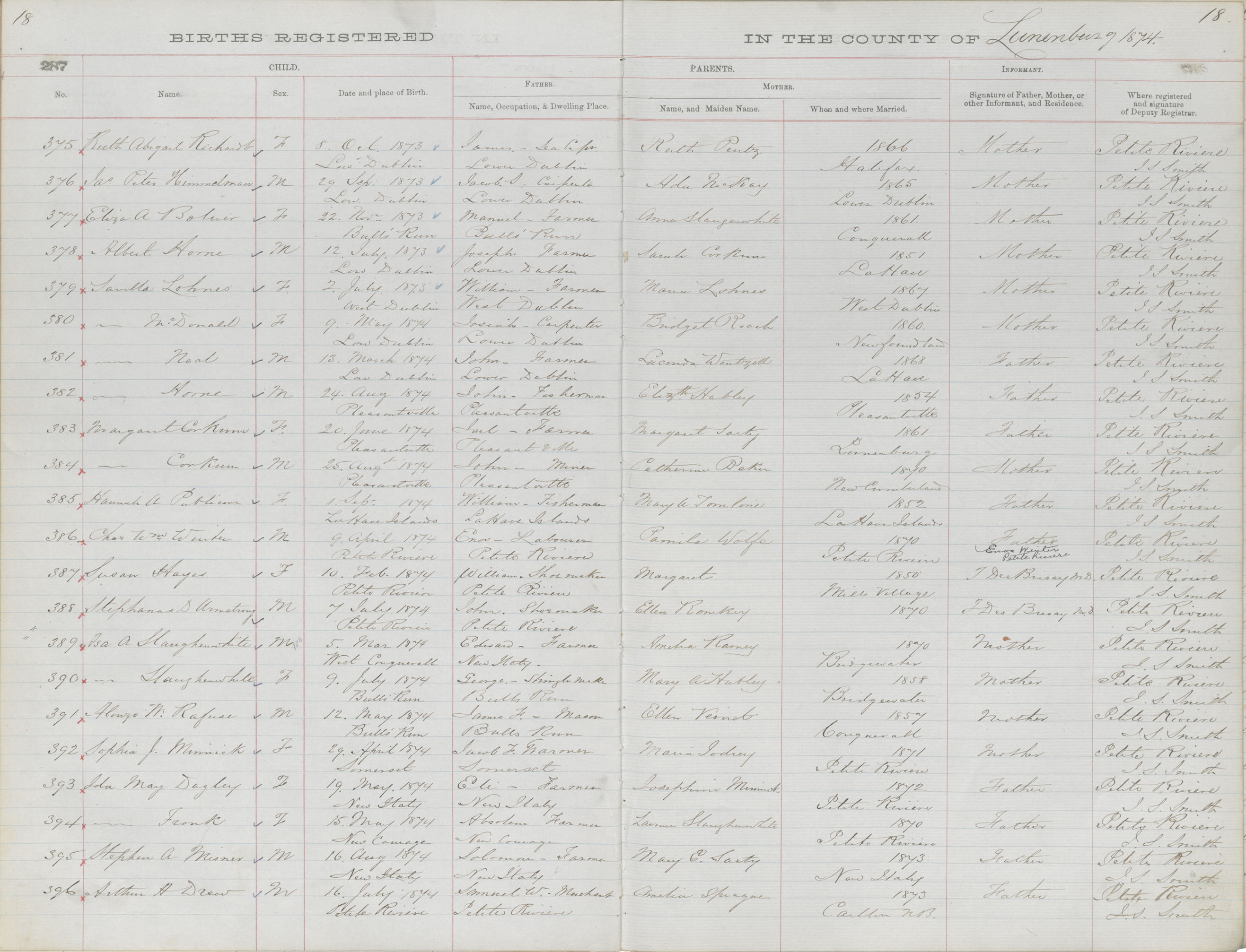 Birth Registration: Year: 1873 book: 1817 page: 287 number: 375