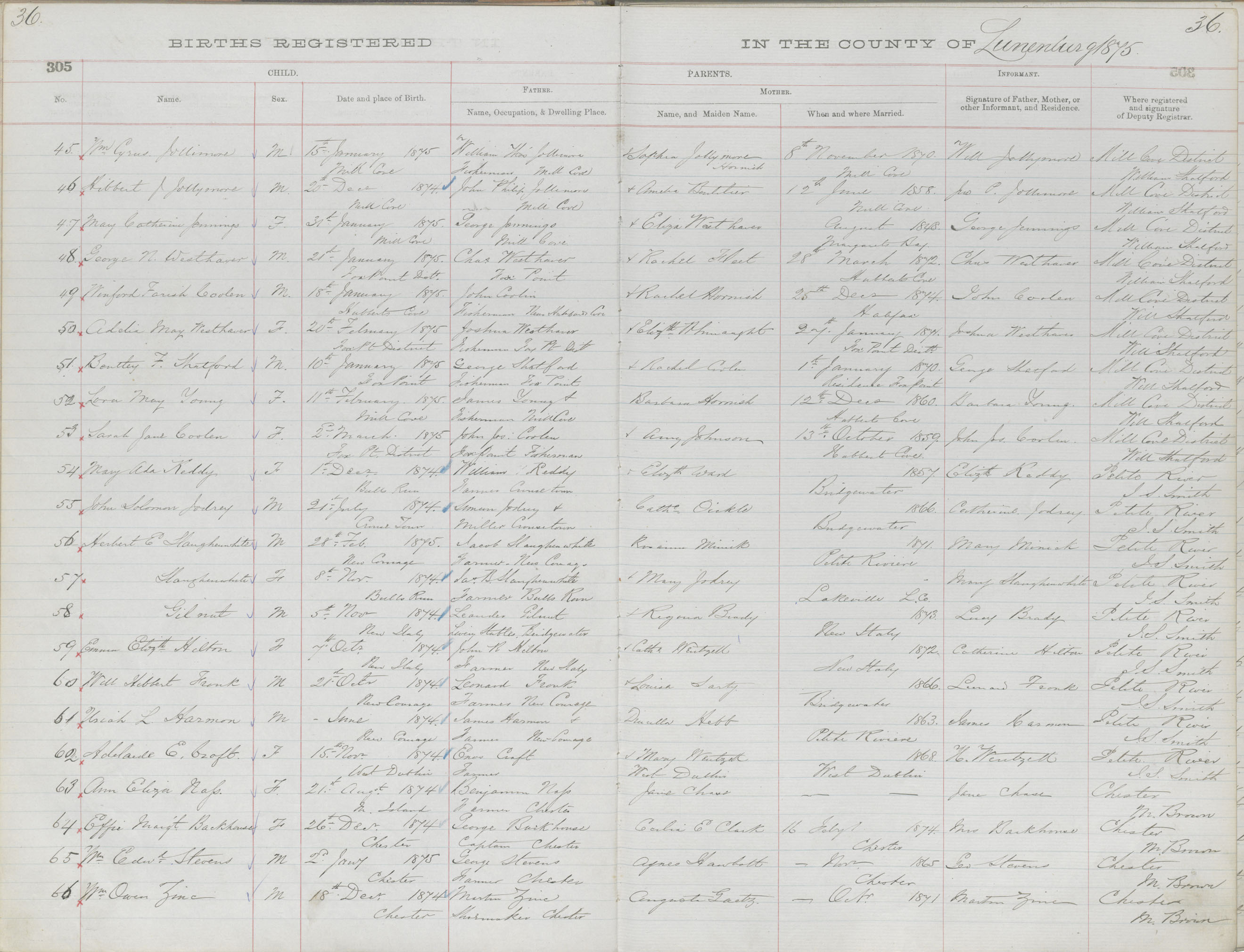 Birth Registration: Year: 1875 book: 1817 page: 305 number: 45