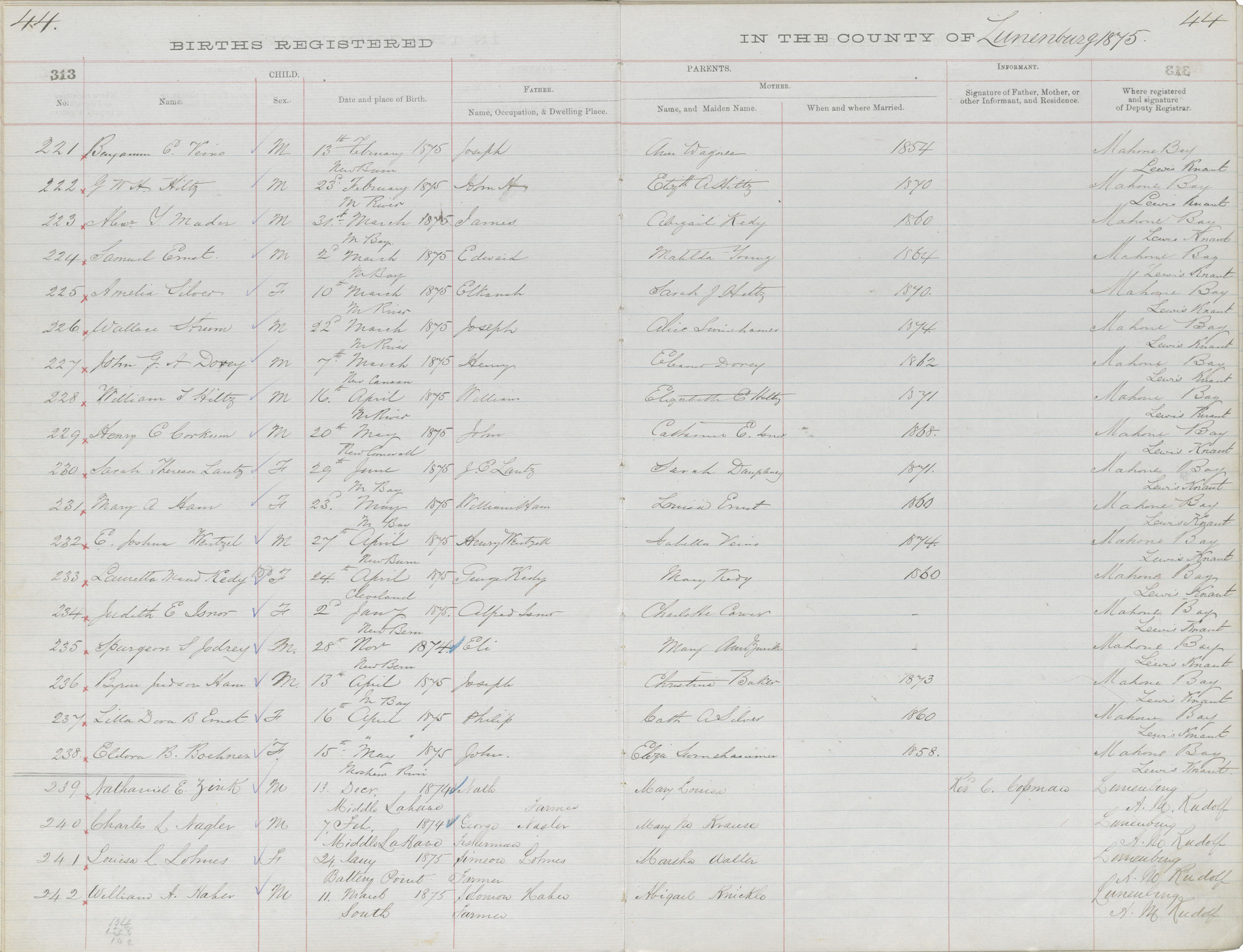 Birth Registration: Year: 1875 book: 1817 page: 313 number: 221