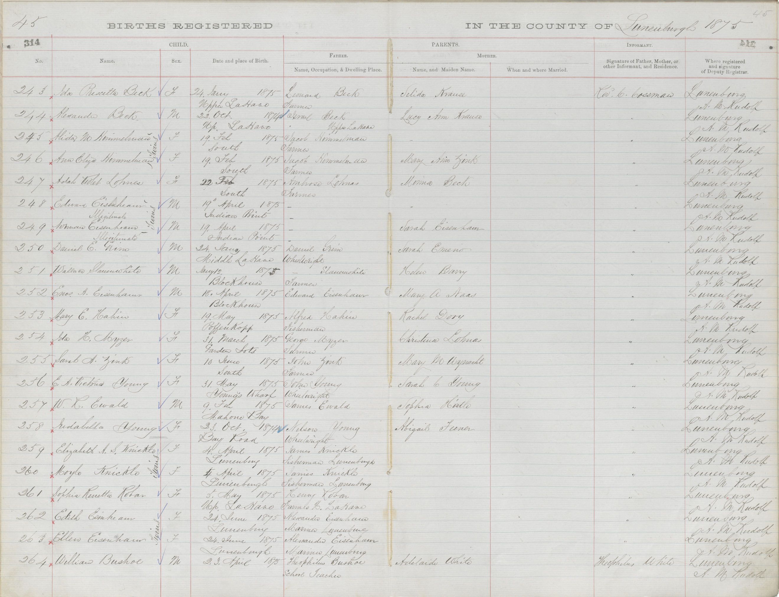 Male Birth Registration: Year: 1875 book: 1817 page: 314 number: 264