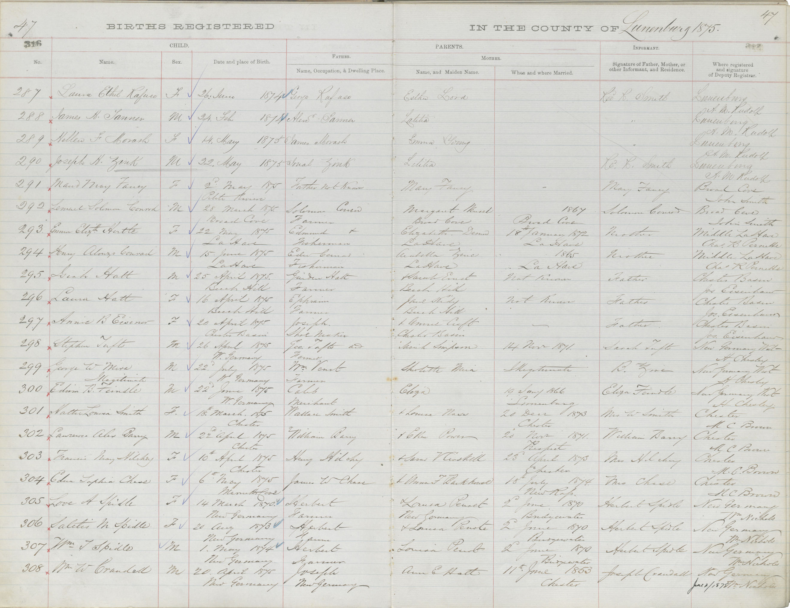 Male Birth Registration: Year: 1875 book: 1817 page: 316 number: 308