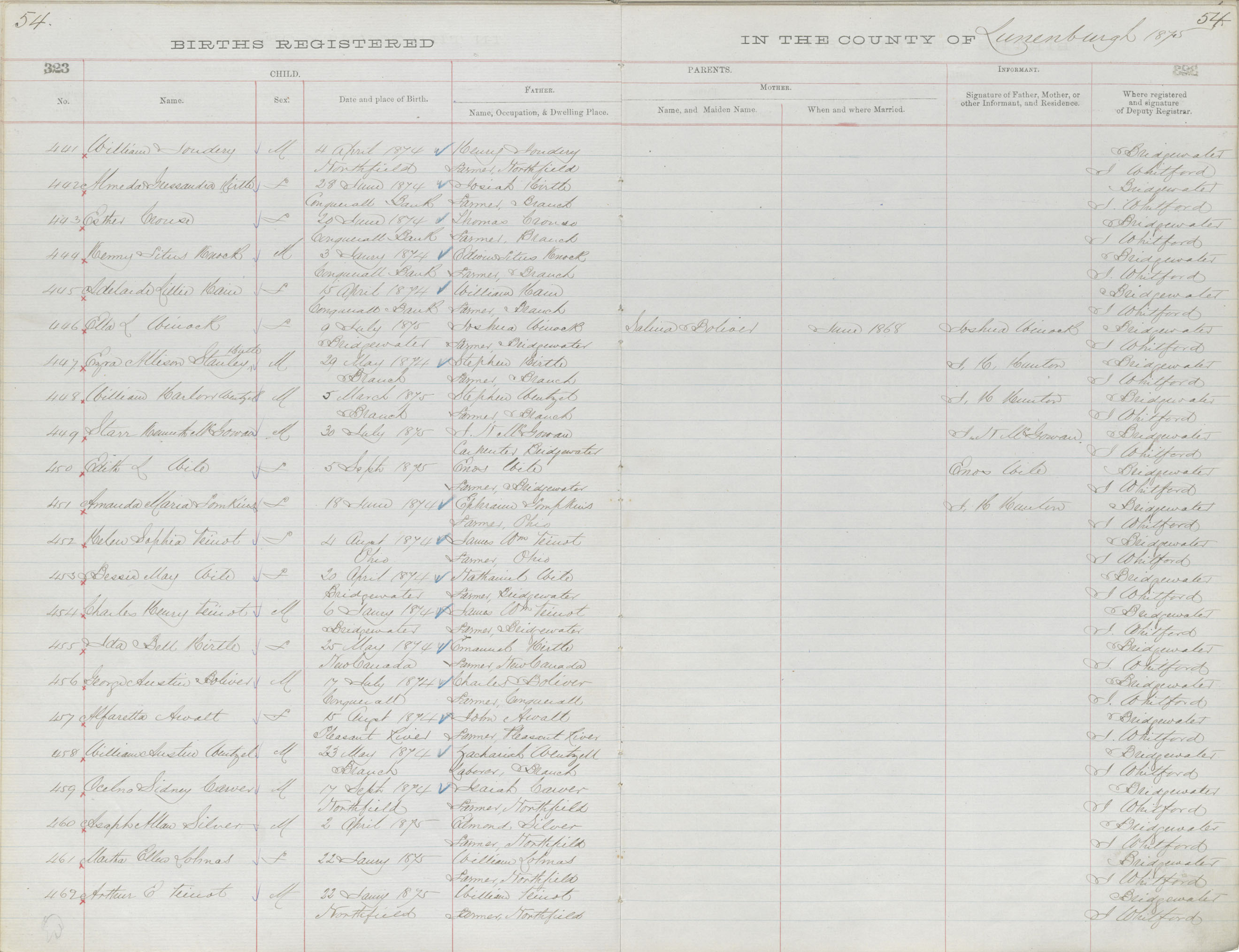 Birth Registration: Year: 1874 book: 1817 page: 323 number: 441