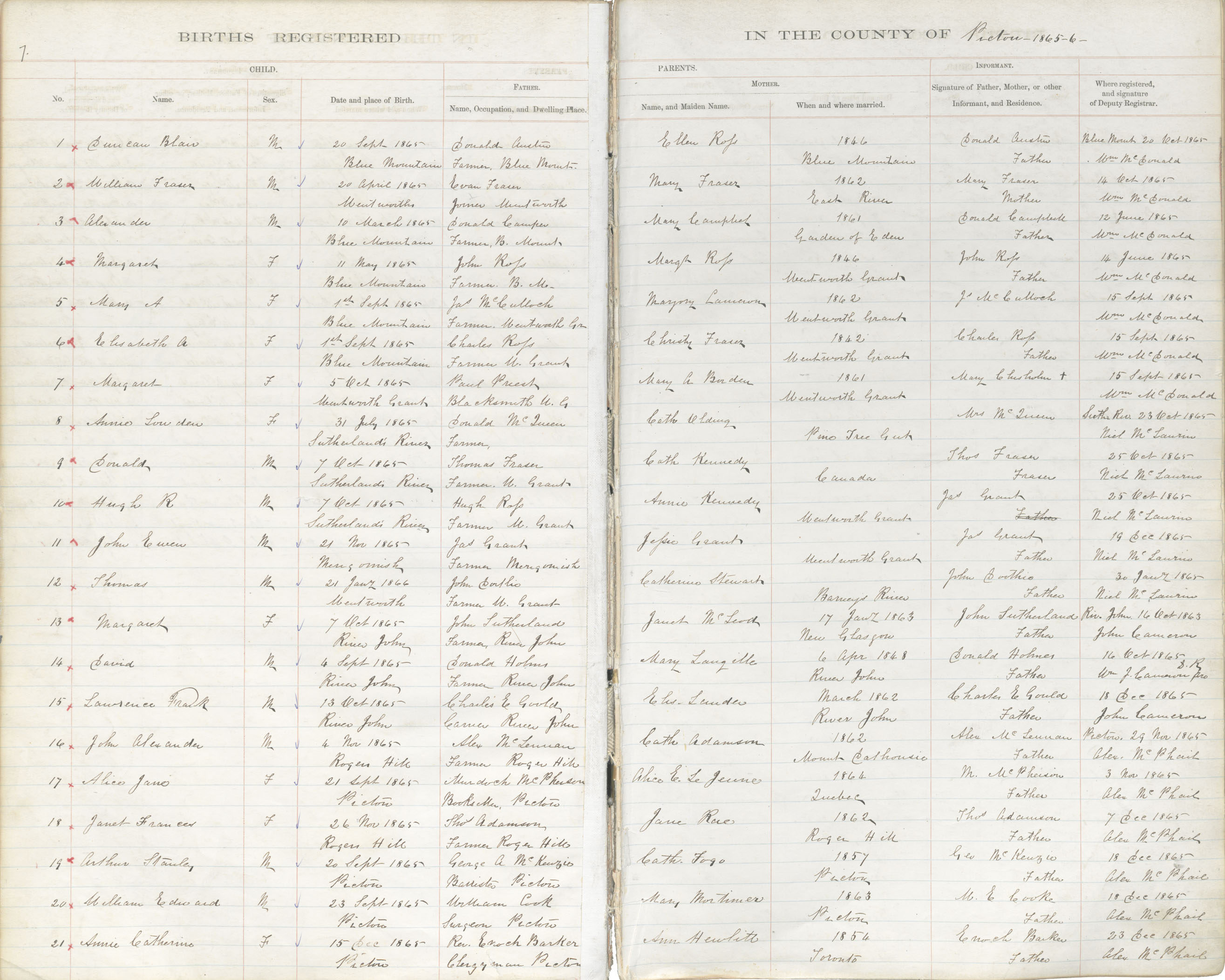 Birth Registration: Year: 1865 book: 1818 page: 7 number: 1