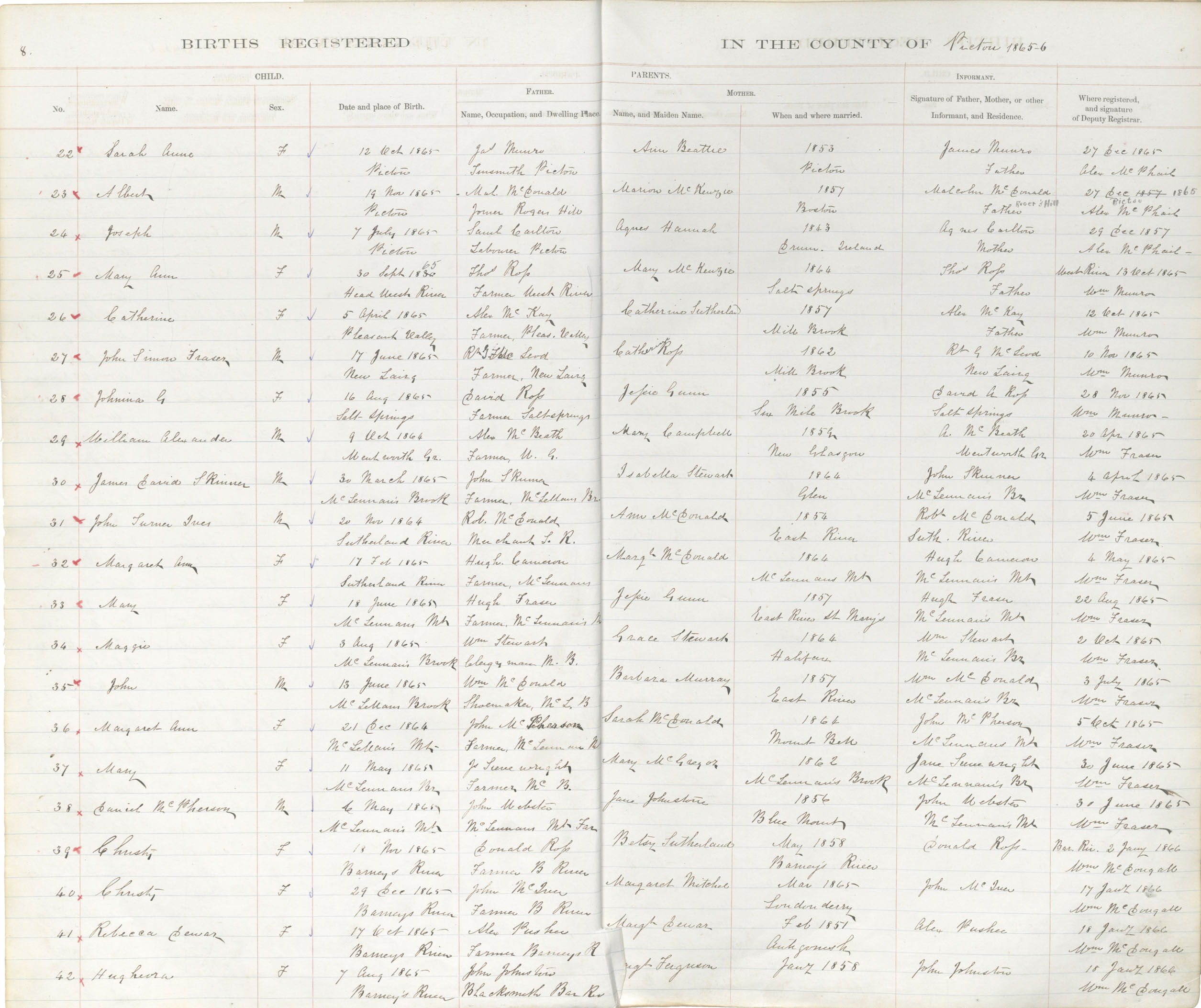 Birth Registration: Year: 1865 book: 1818 page: 8 number: 22