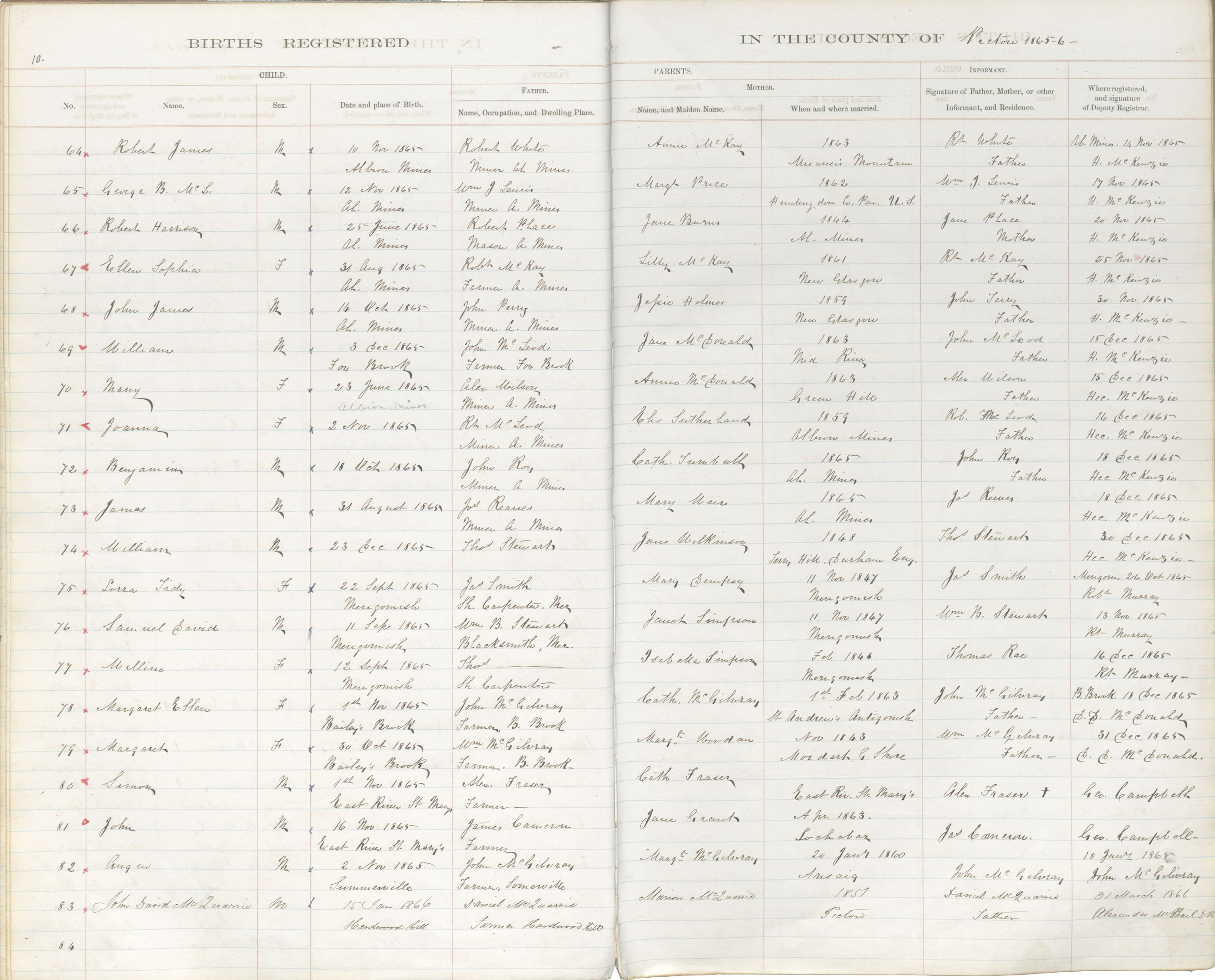 Birth Registration: Year: 1865 book: 1818 page: 10 number: 64