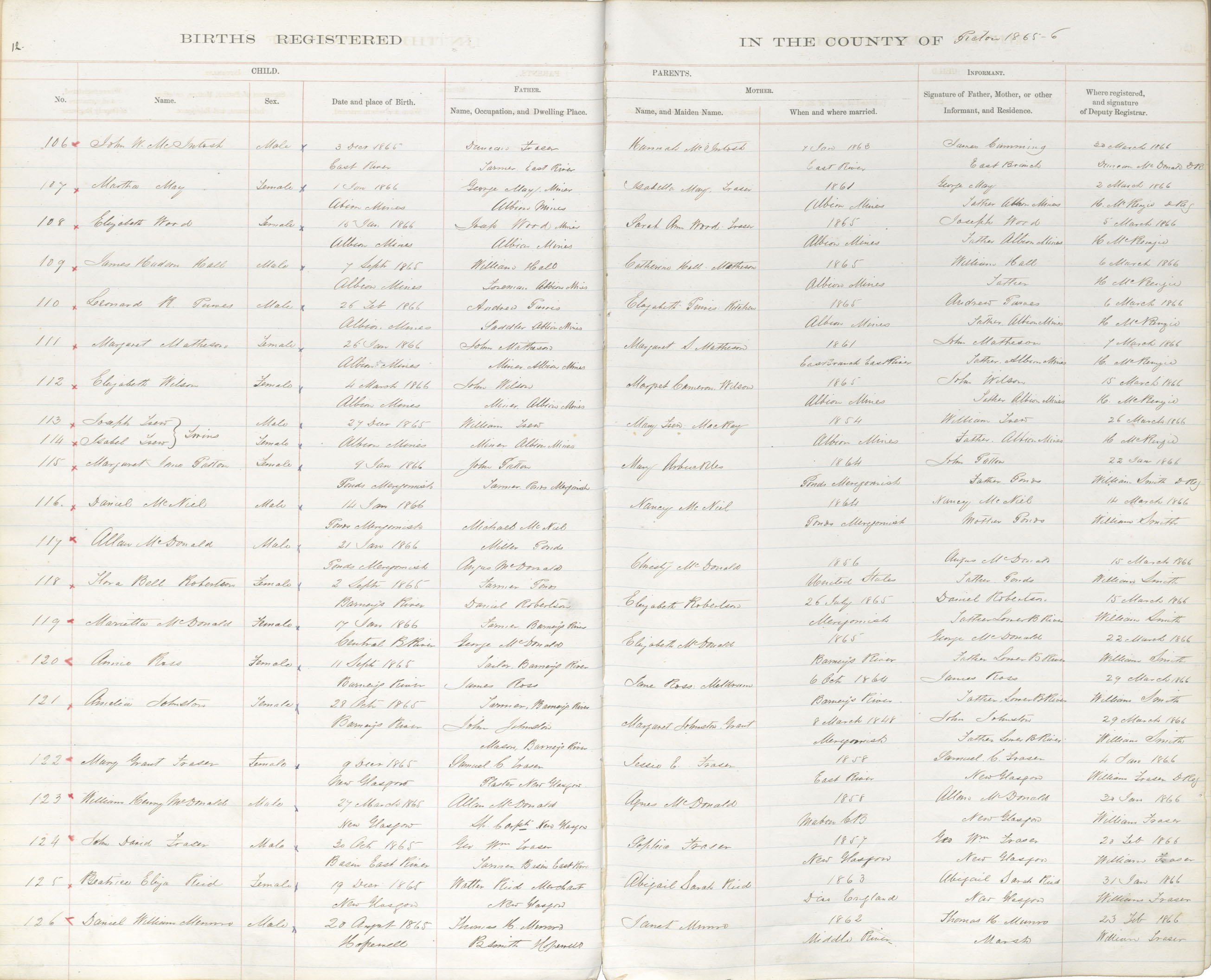 Birth Registration: Year: 1865 book: 1818 page: 12 number: 106