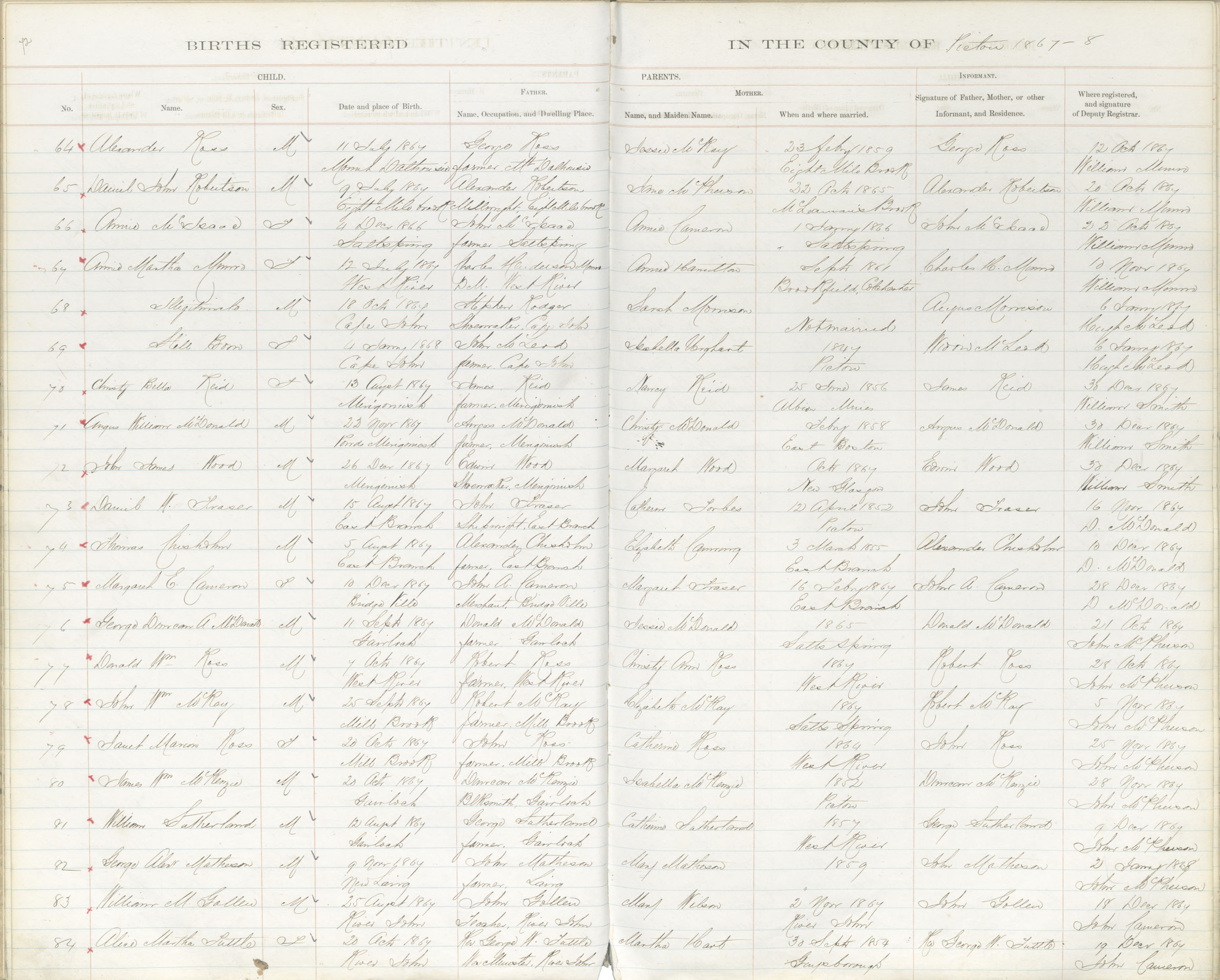 Birth Registration: Year: 1867 book: 1818 page: 72 number: 84