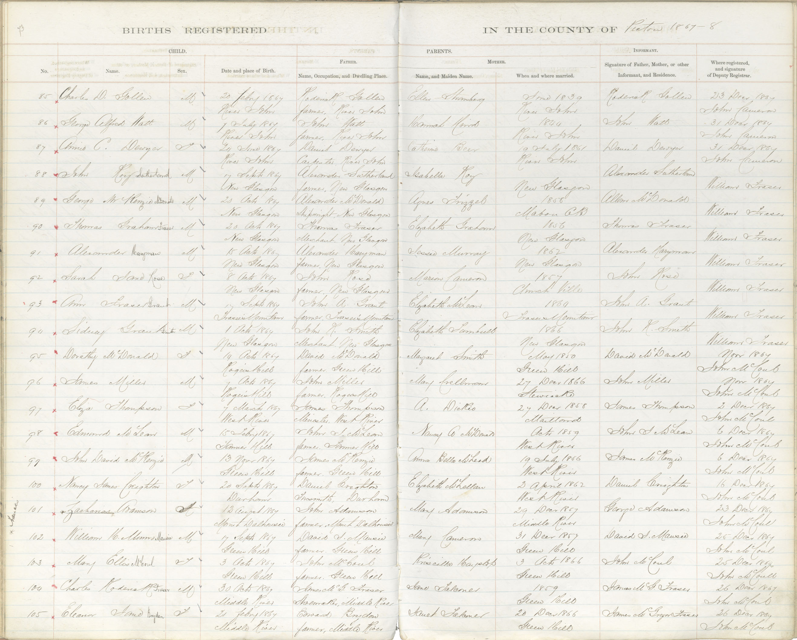 Birth Registration: Year: 1867 book: 1818 page: 73 number: 105