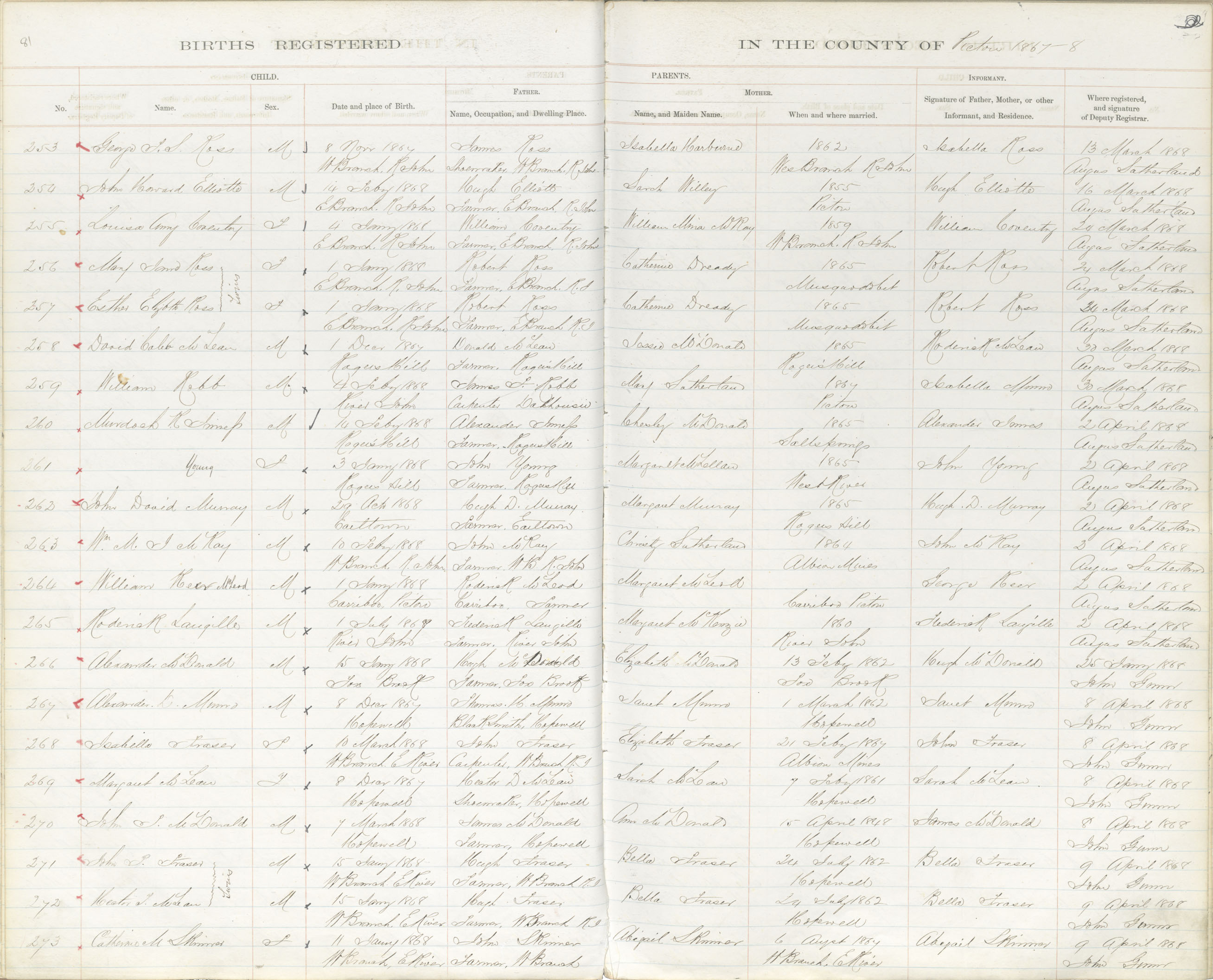 Birth Registration: Year: 1868 book: 1818 page: 81 number: 273