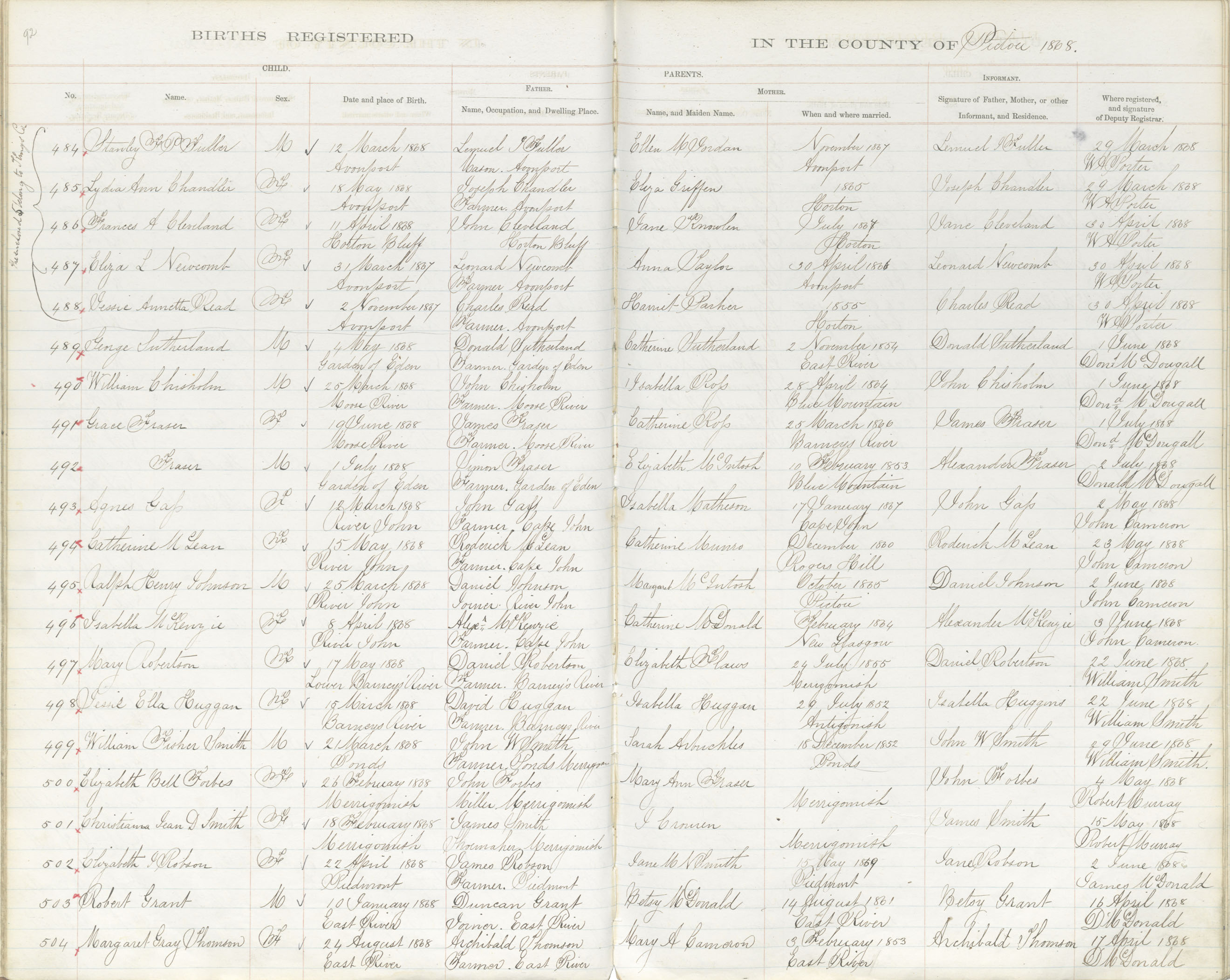 Birth Registration: Year: 1868 book: 1818 page: 92 number: 504