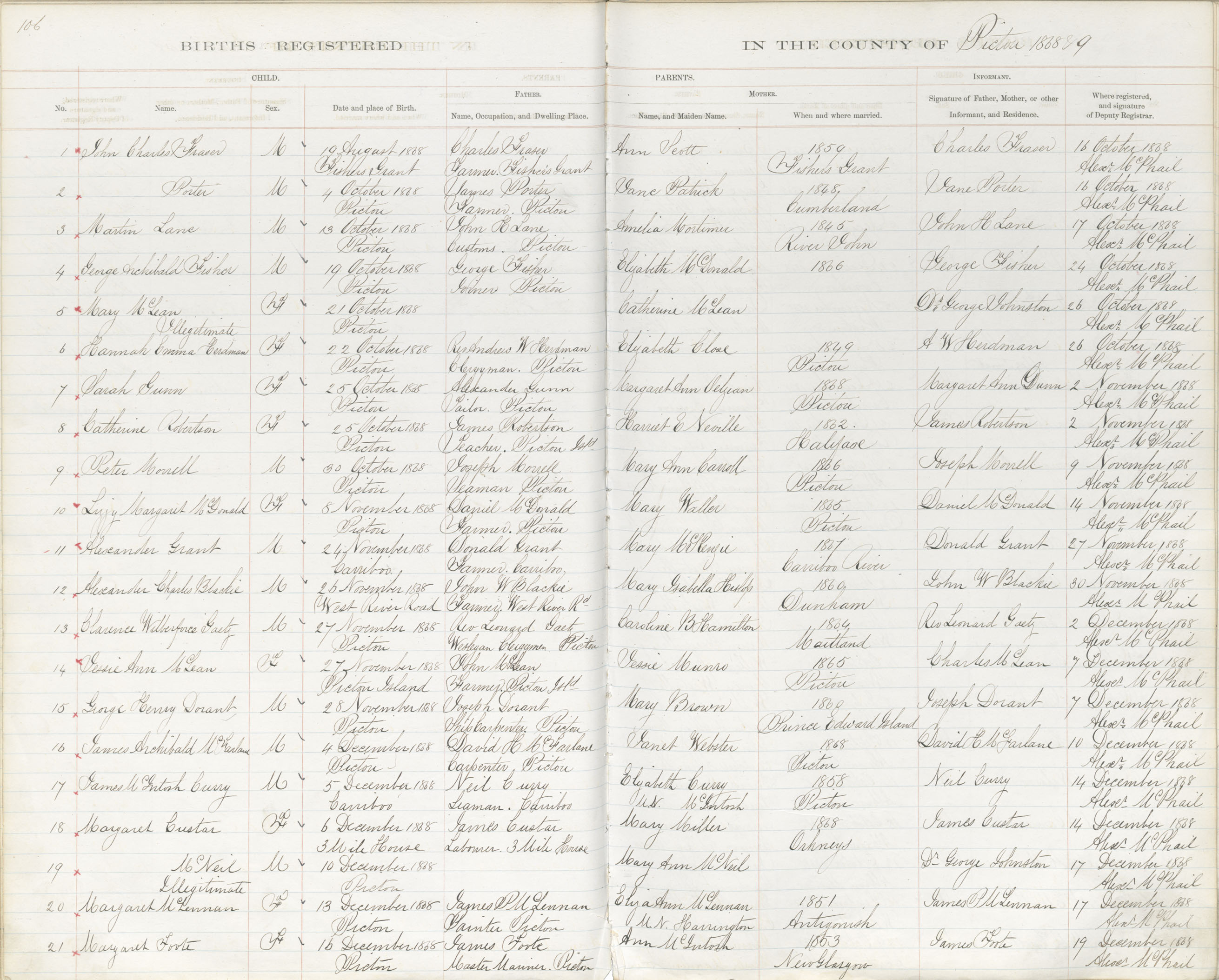 Birth Registration: Year: 1868 book: 1818 page: 106 number: 1
