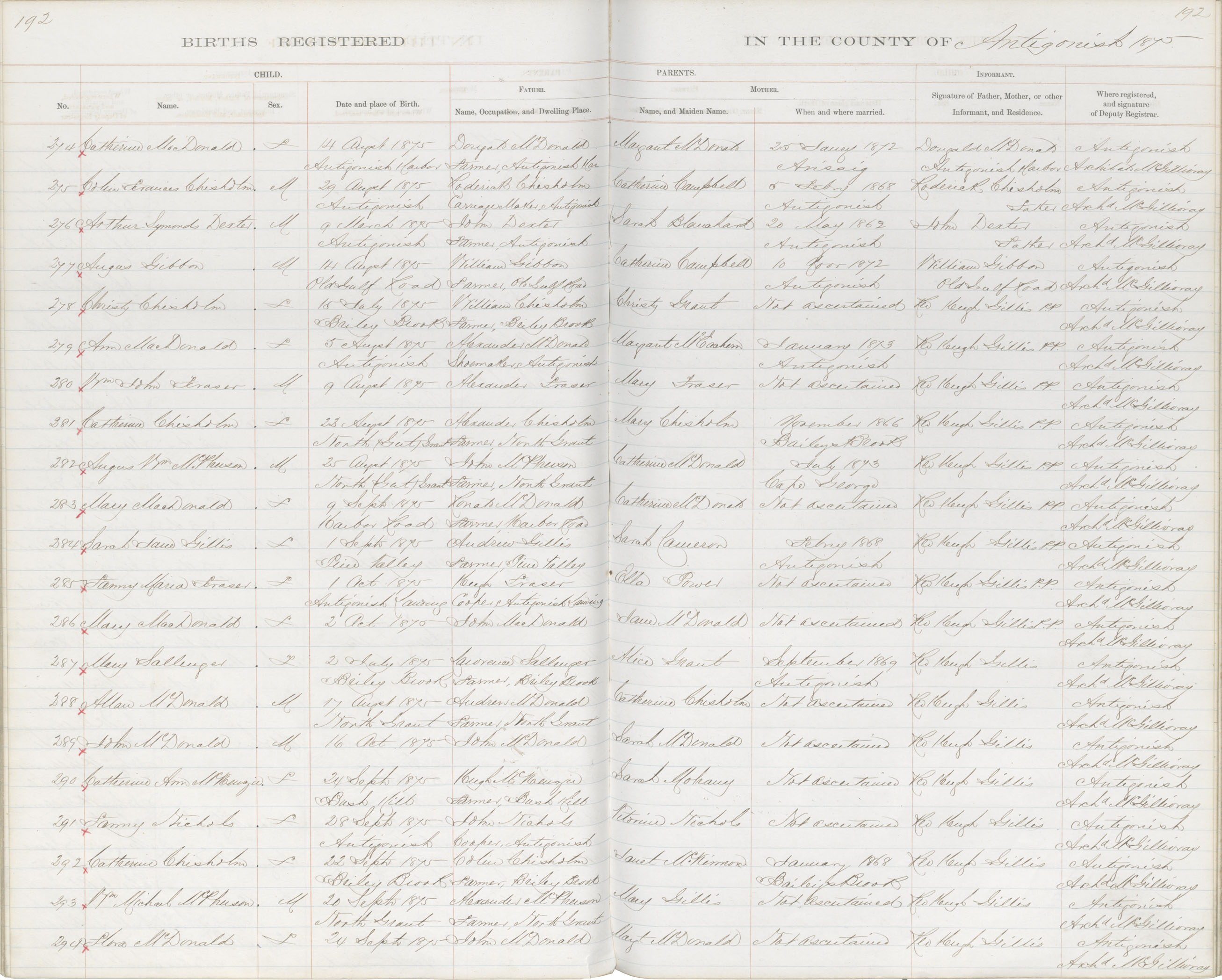 Birth Registration: Year: 1875 book: 1802 page: 192 number: 286