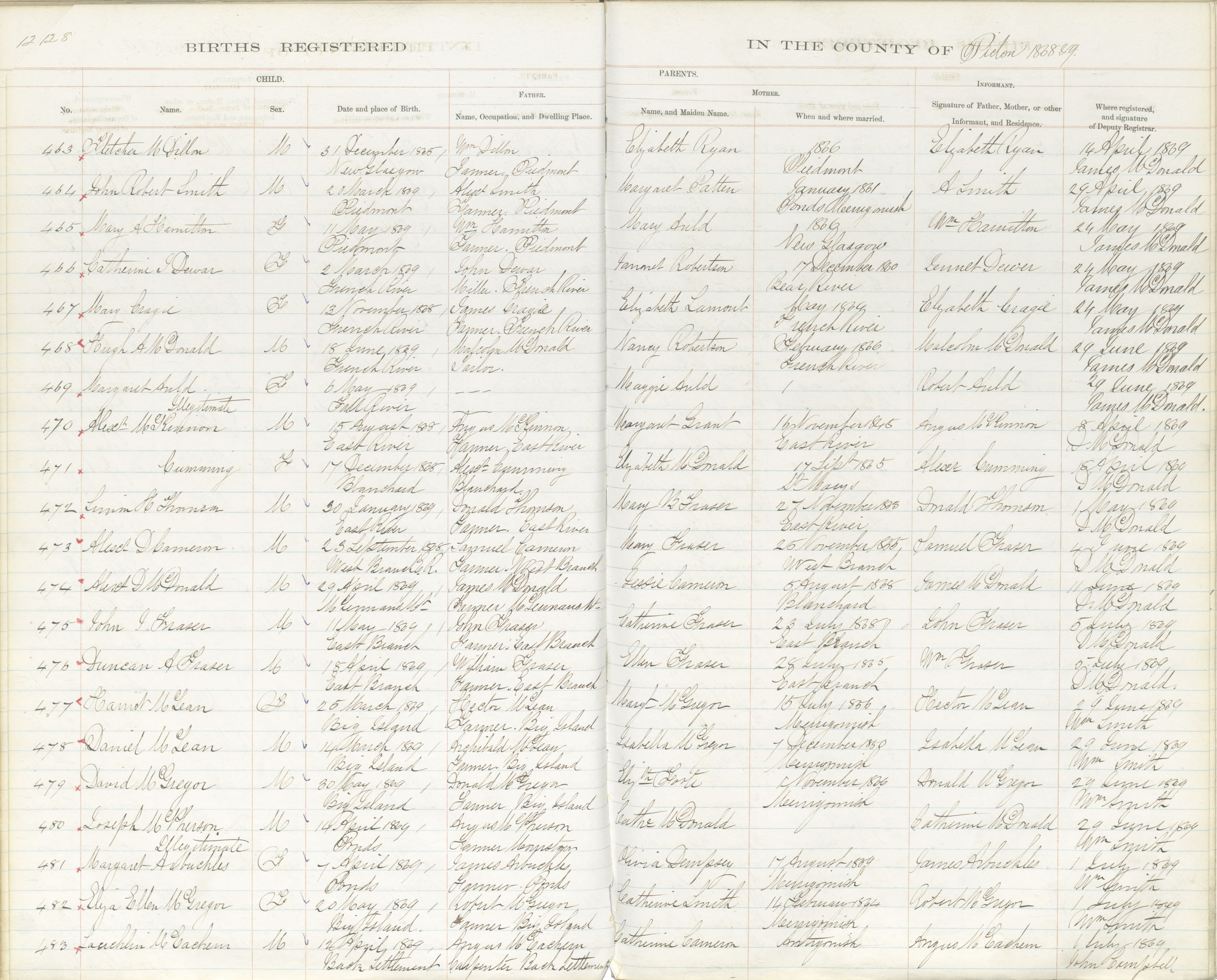 Birth Registration: Year: 1869 book: 1818 page: 128 number: 483