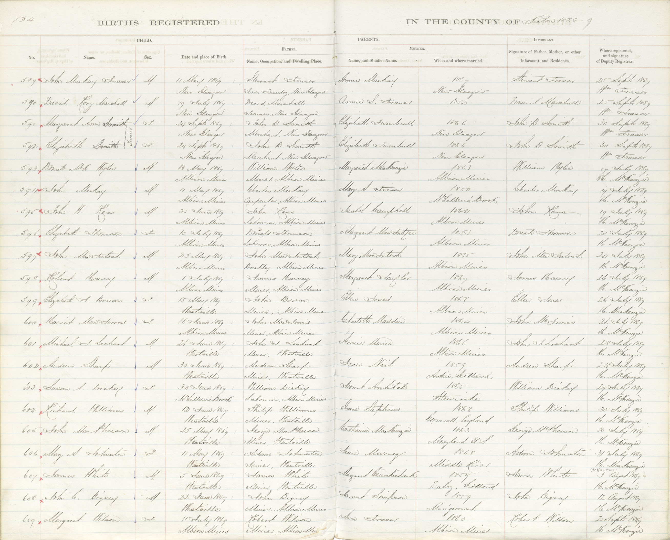 Birth Registration: Year: 1869 book: 1818 page: 134 number: 589