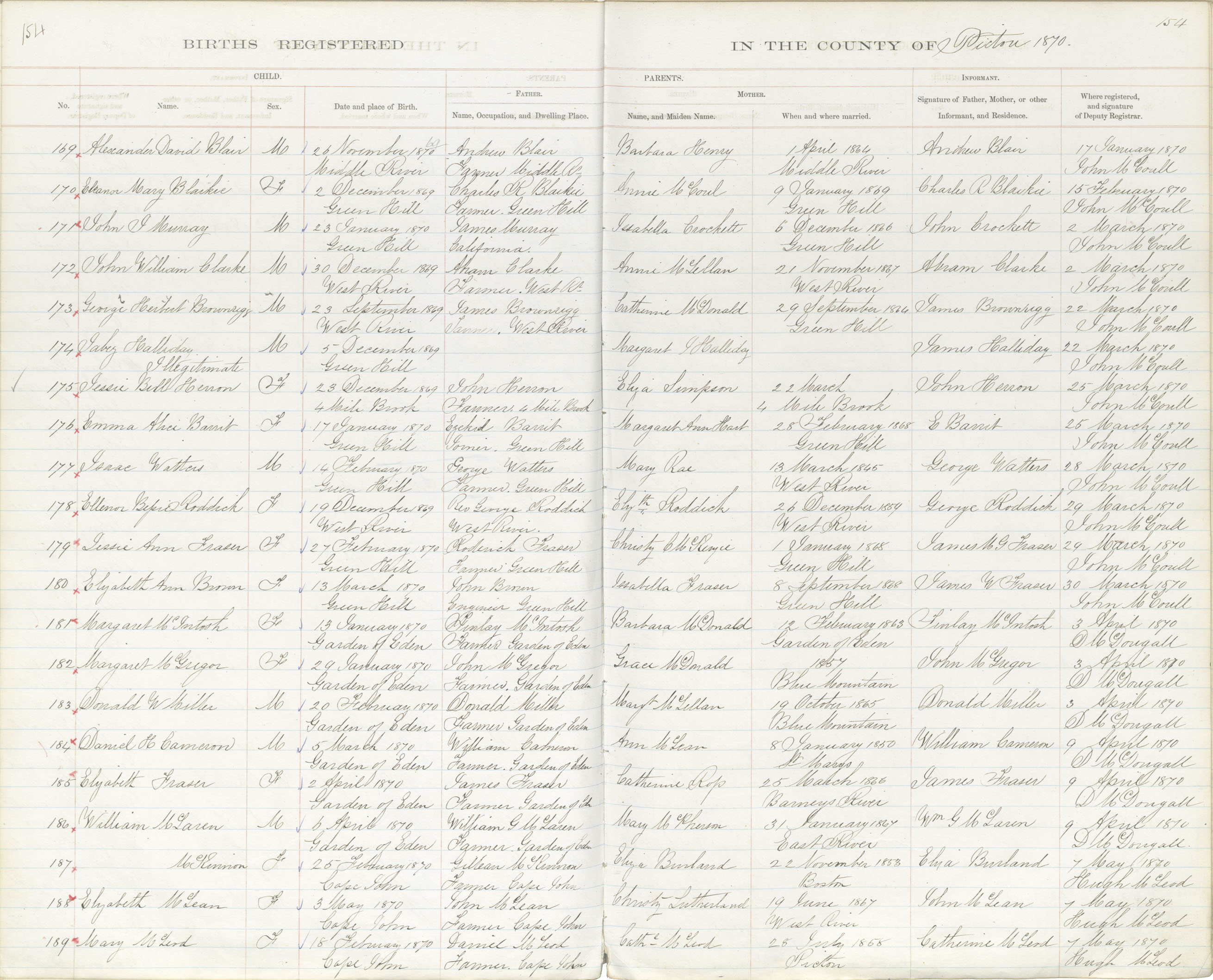 Birth Registration: Year: 1870 book: 1818 page: 154 number: 169