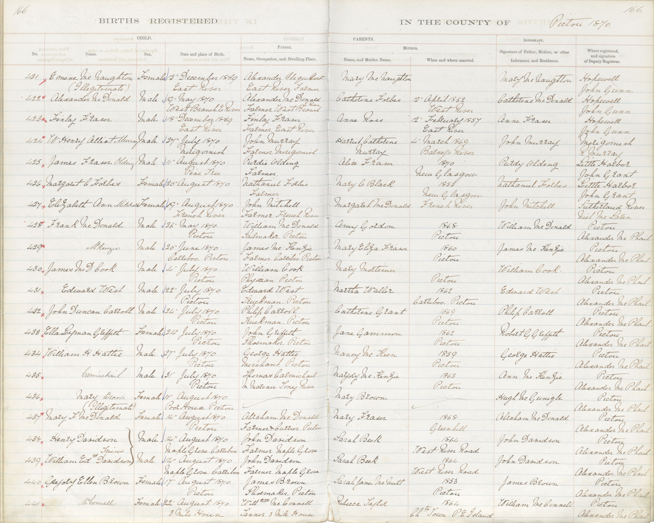 Female Birth Registration: Year: 1870 book: 1818 page: 166 number: 441