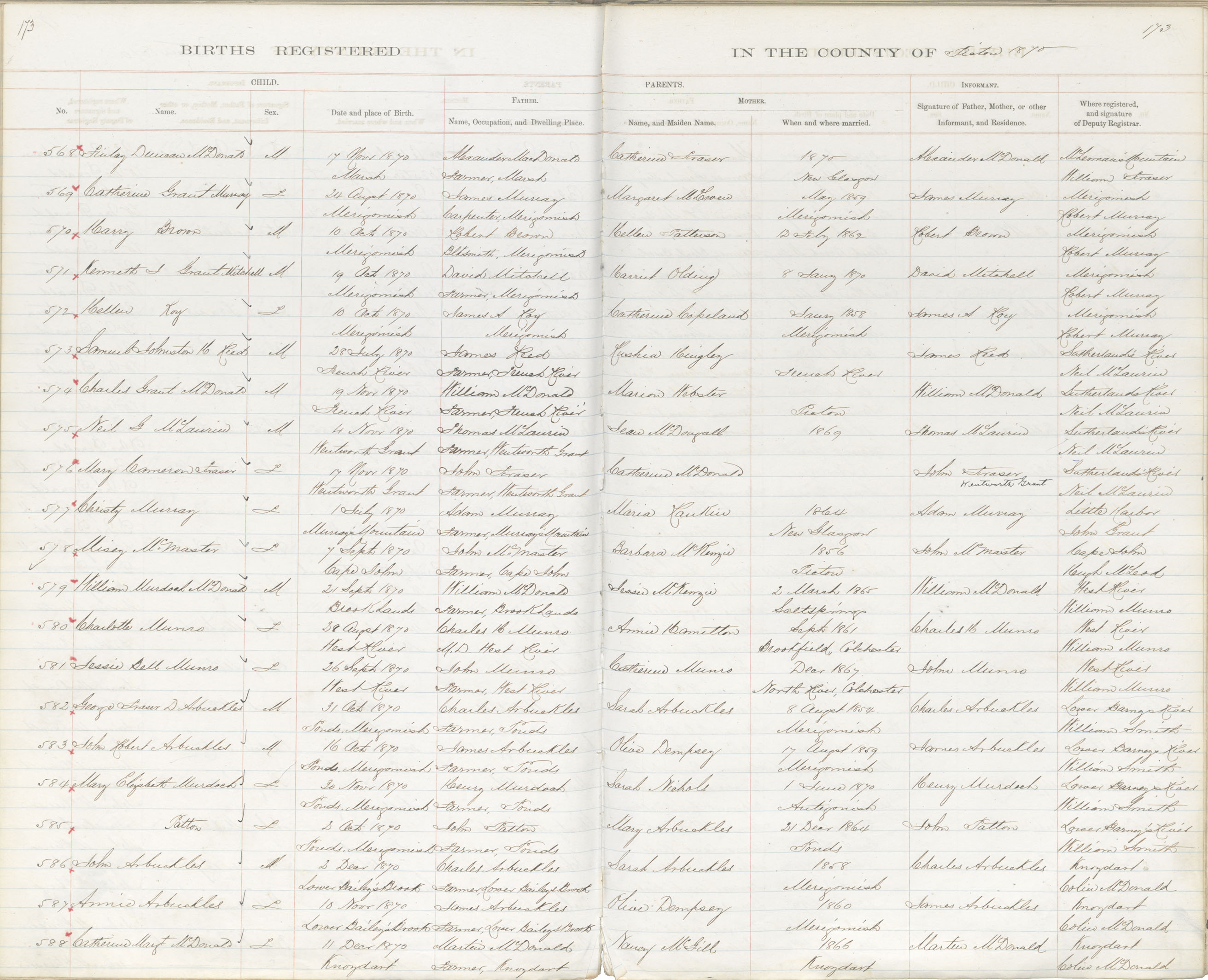 Birth Registration: Year: 1870 book: 1818 page: 173 number: 588