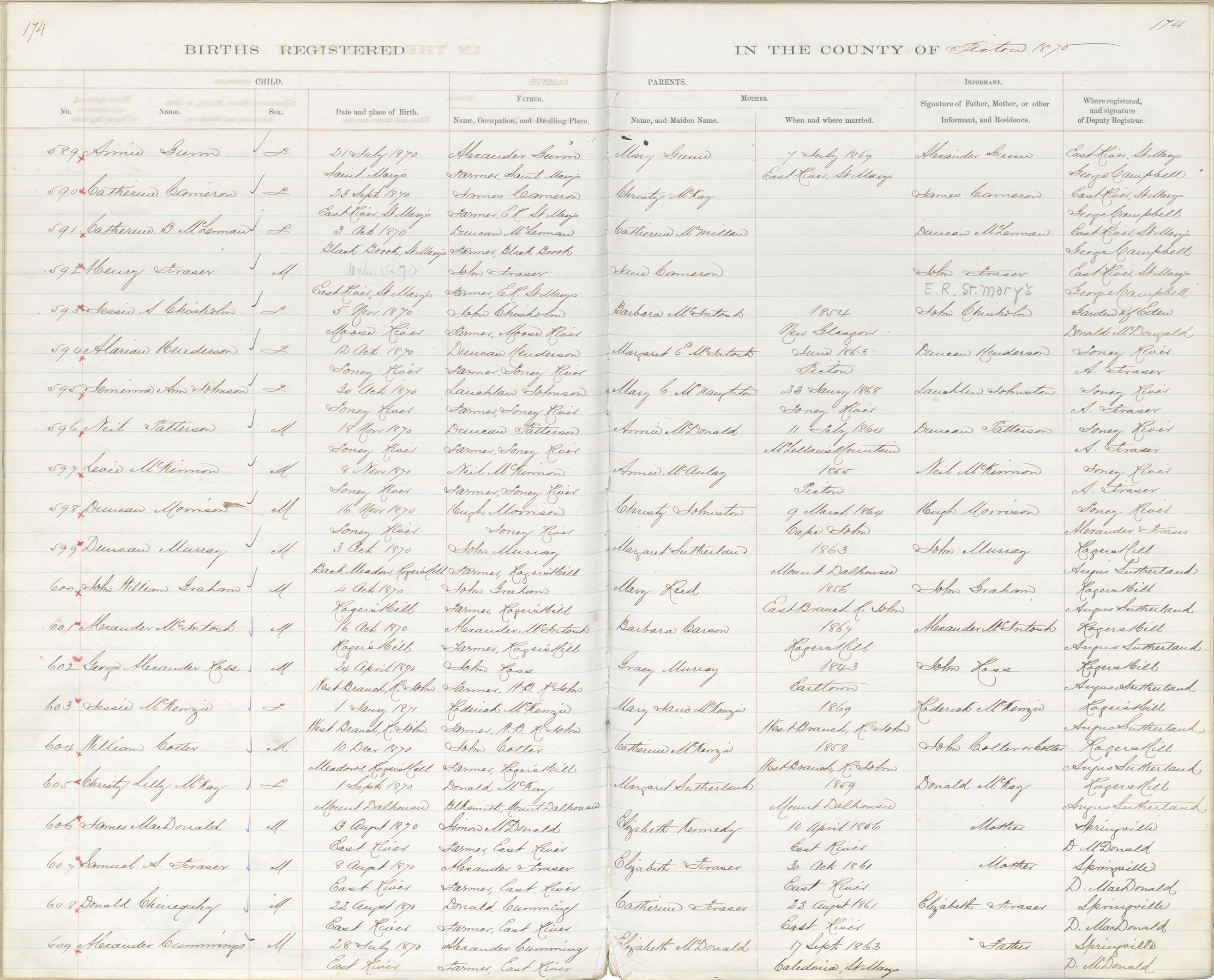 Birth Registration: Year: 1870 book: 1818 page: 174 number: 606