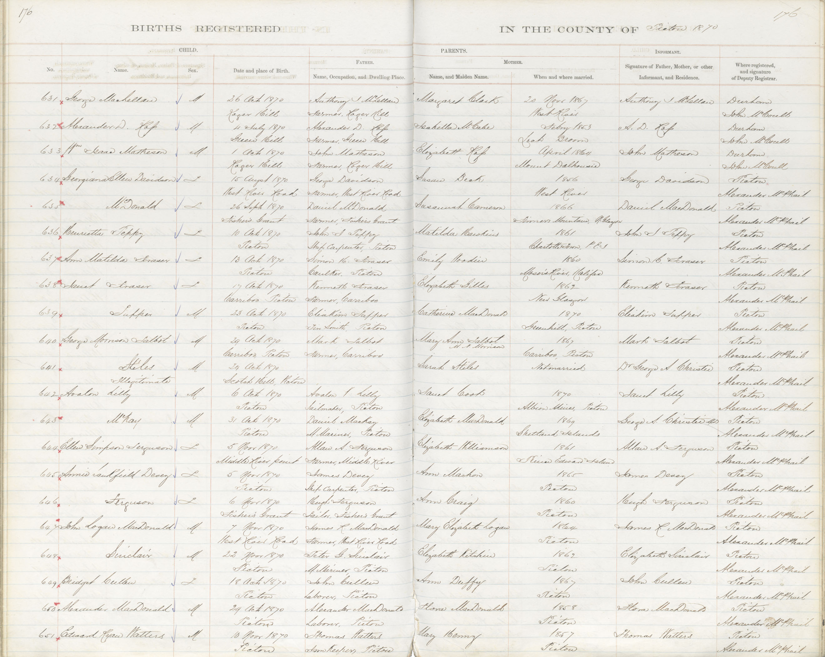 Birth Registration: Year: 1870 book: 1818 page: 176 number: 650
