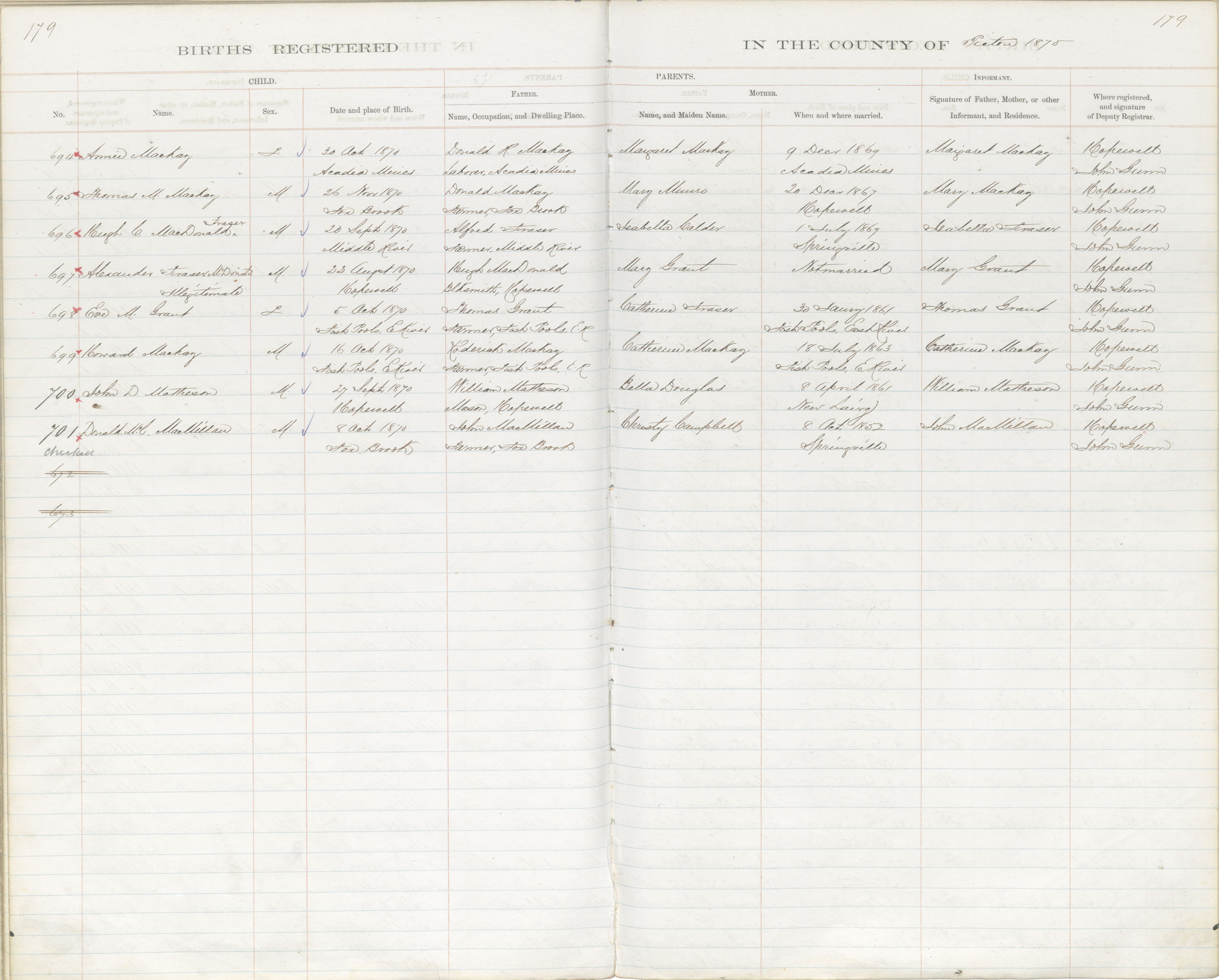 Birth Registration: Year: 1870 book: 1818 page: 179 number: 694