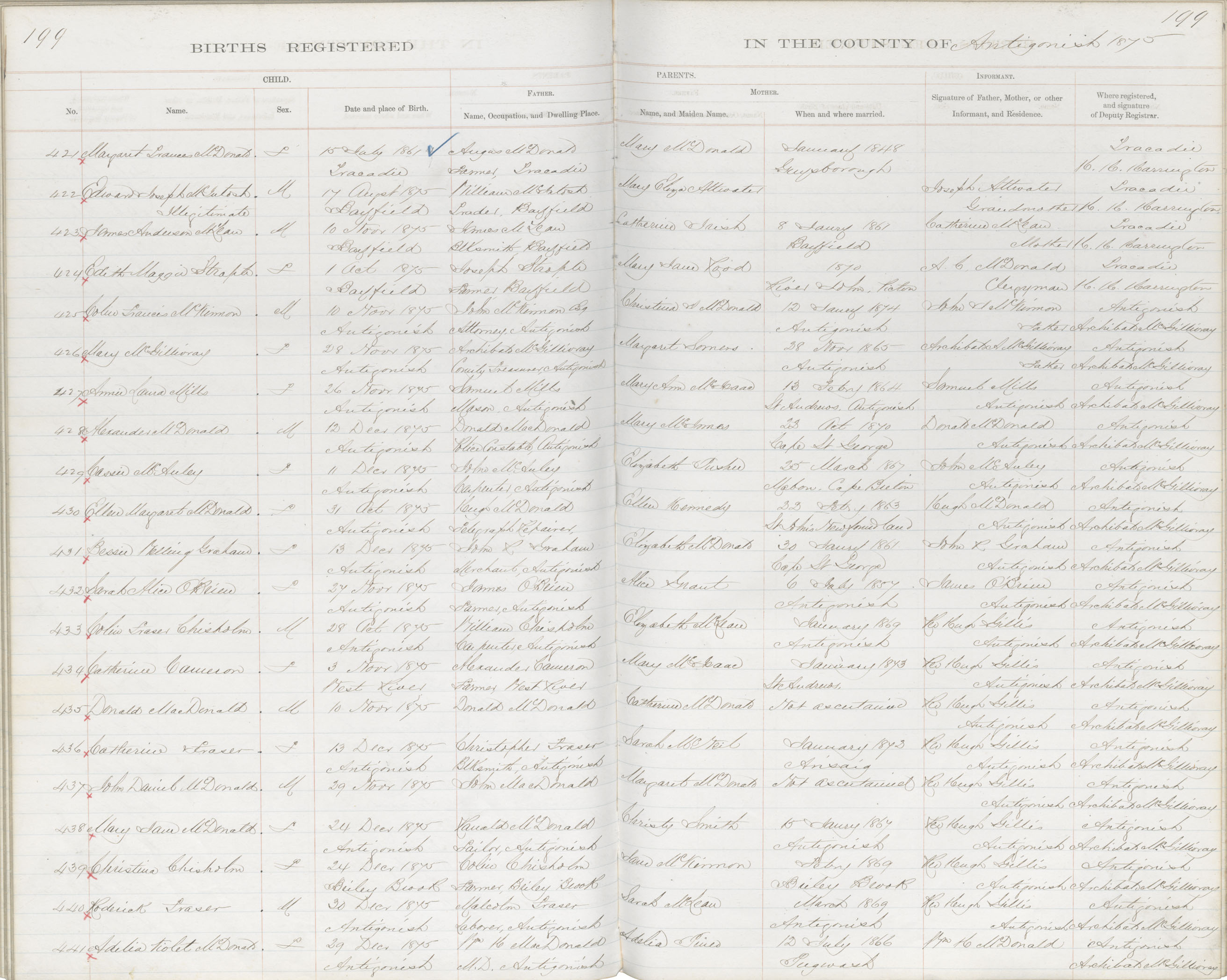 Birth Registration: Year: 1875 book: 1802 page: 199 number: 435