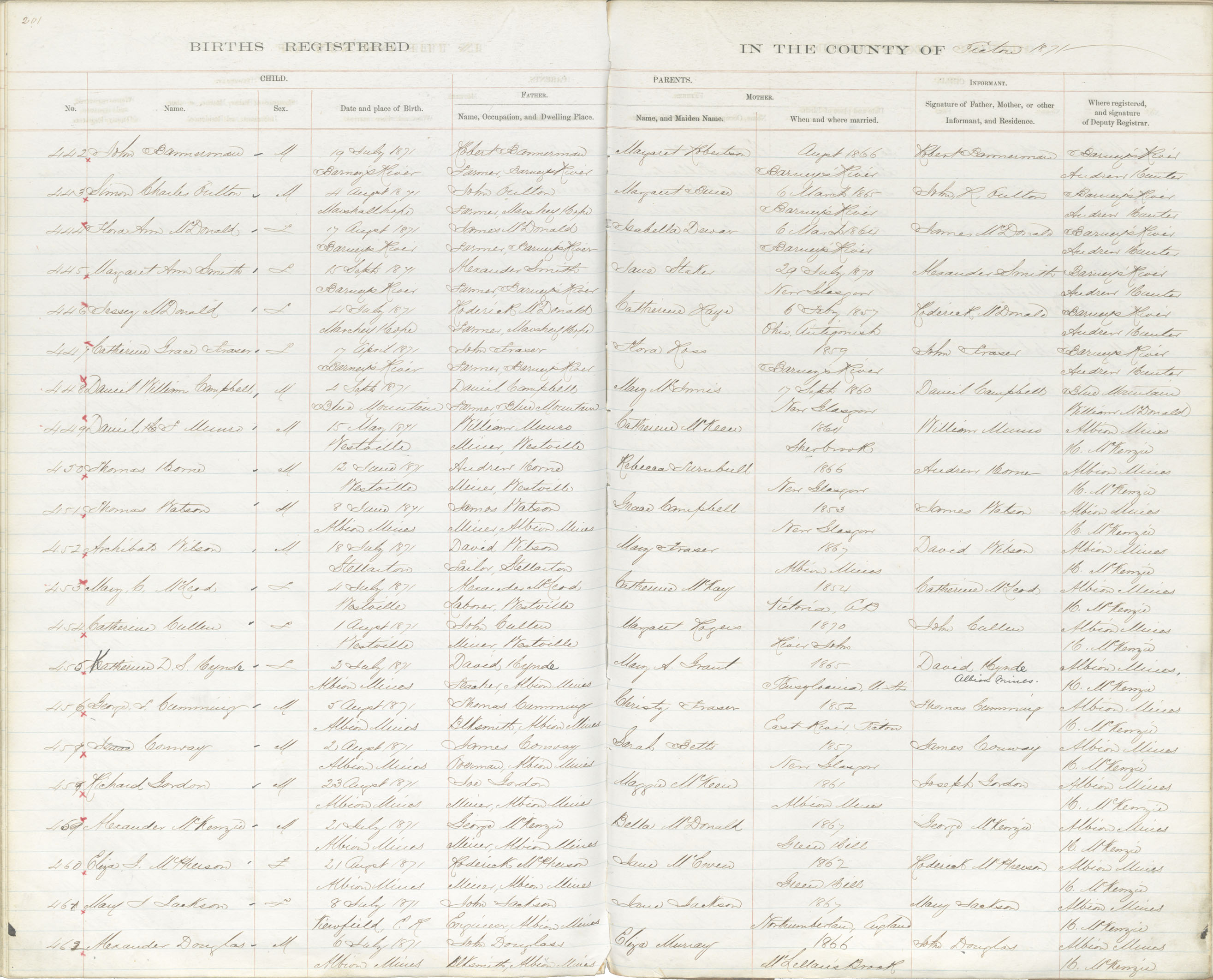 Male Birth Registration: Year: 1871 book: 1818 page: 201 number: 442