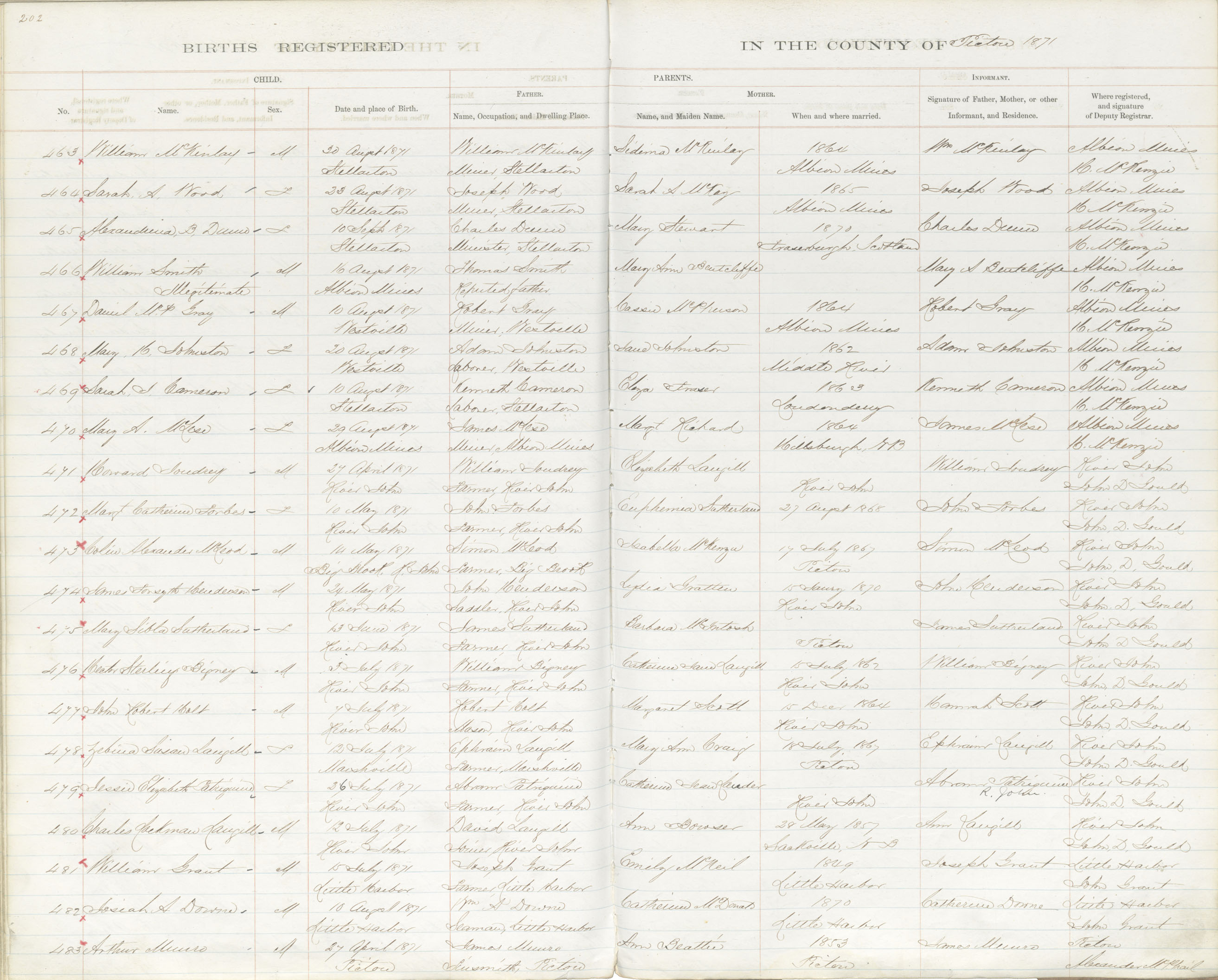 Birth Registration: Year: 1871 book: 1818 page: 202 number: 483