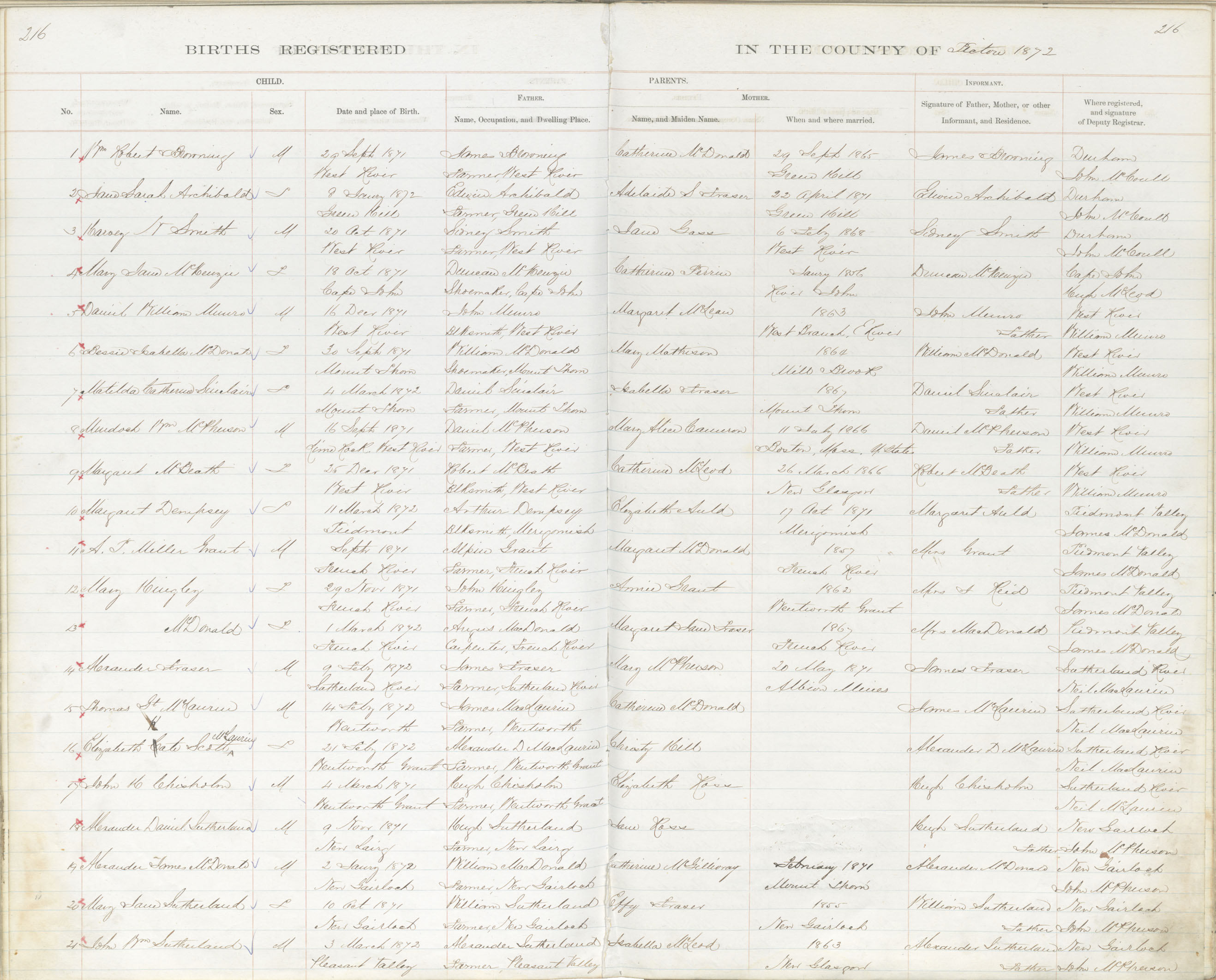 Birth Registration: Year: 1871 book: 1818 page: 216 number: 1