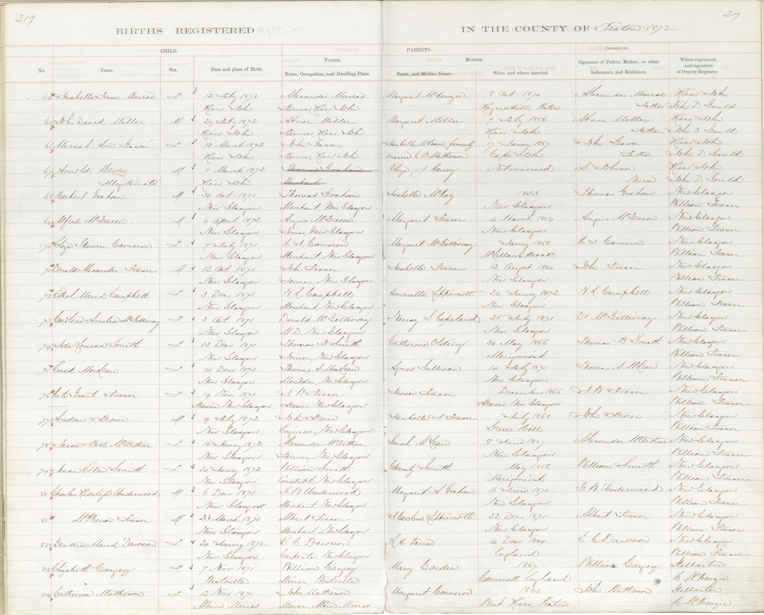 Birth Registration: Year: 1872 book: 1818 page: 219 number: 64