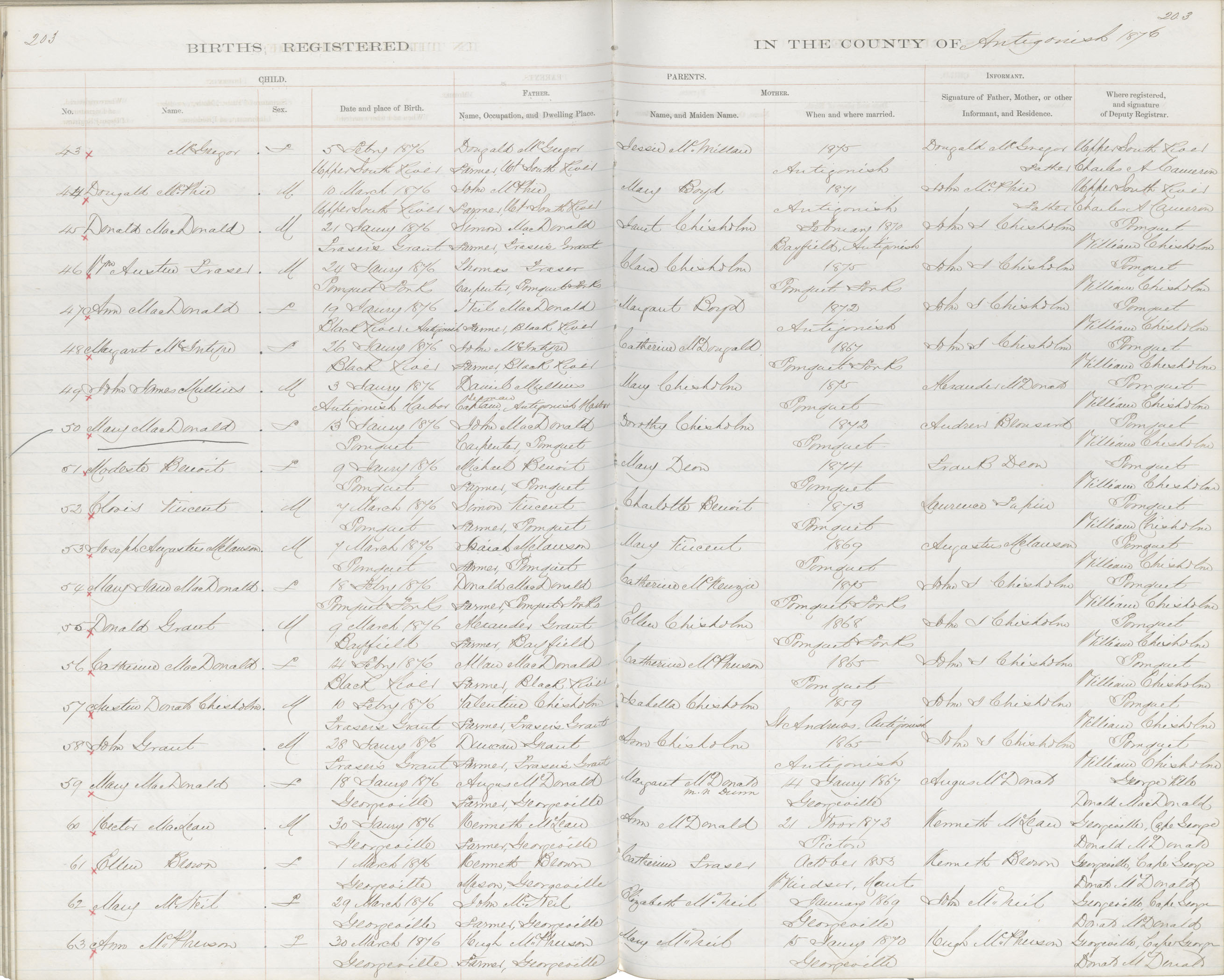 Birth Registration: Year: 1876 book: 1802 page: 203 number: 45