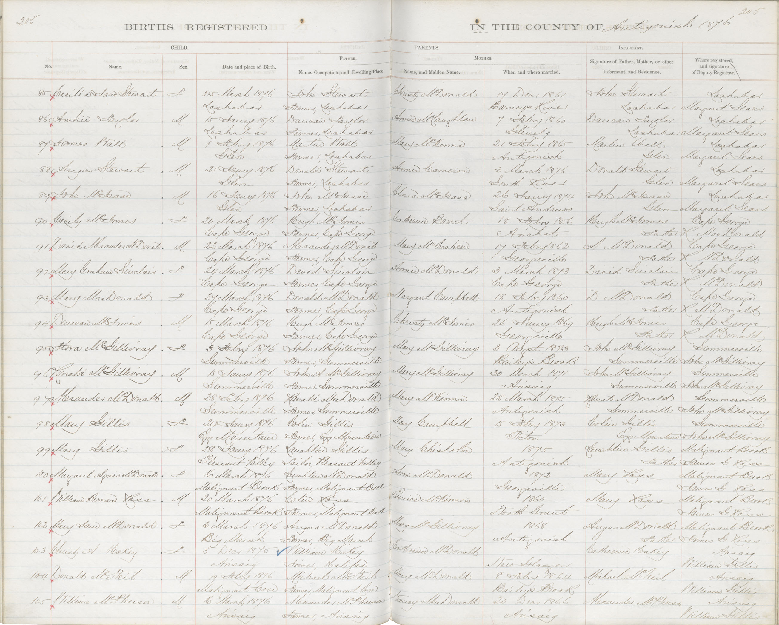 Birth Registration: Year: 1876 book: 1802 page: 205 number: 85