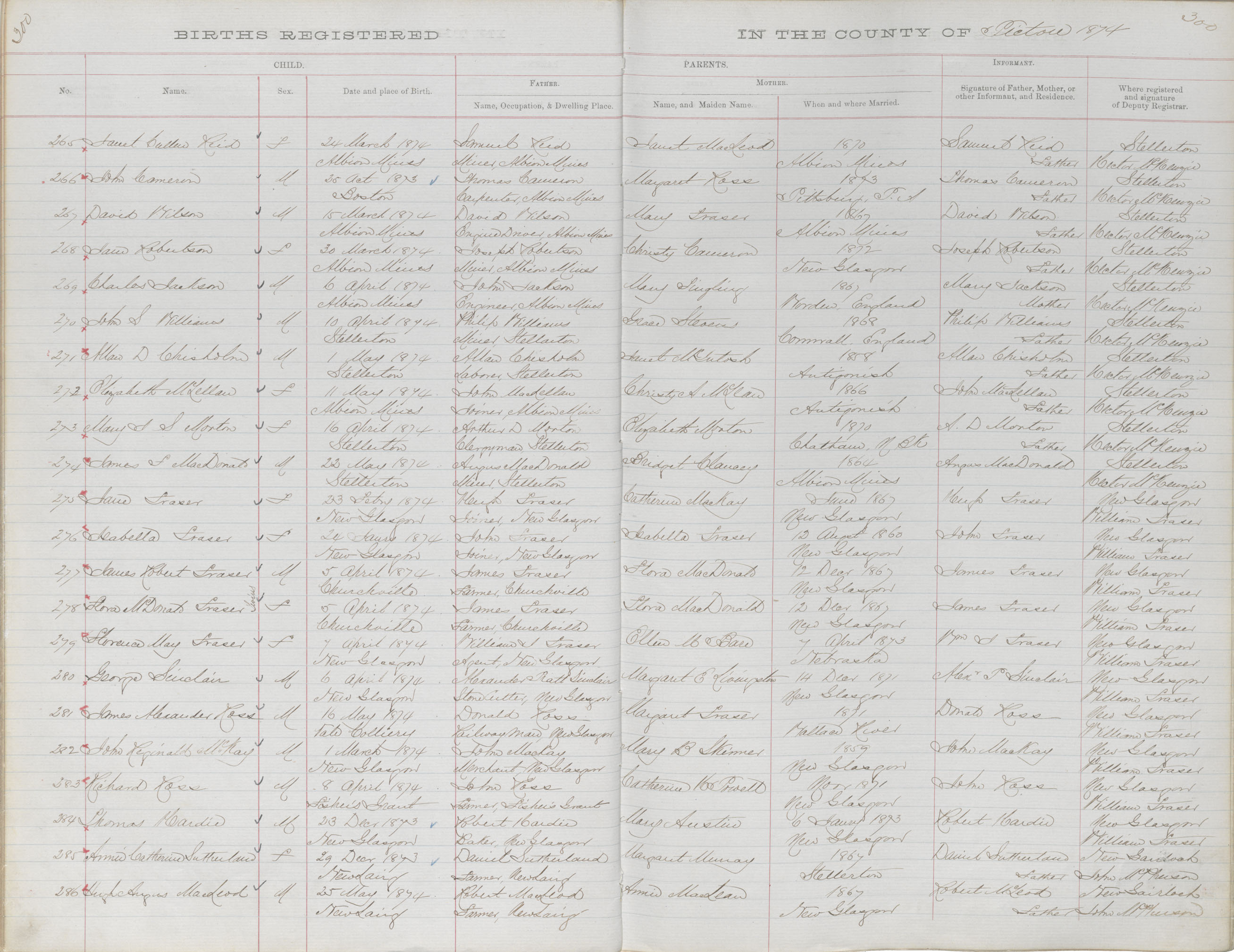 Birth Registration: Year: 1874 book: 1818 page: 300 number: 274