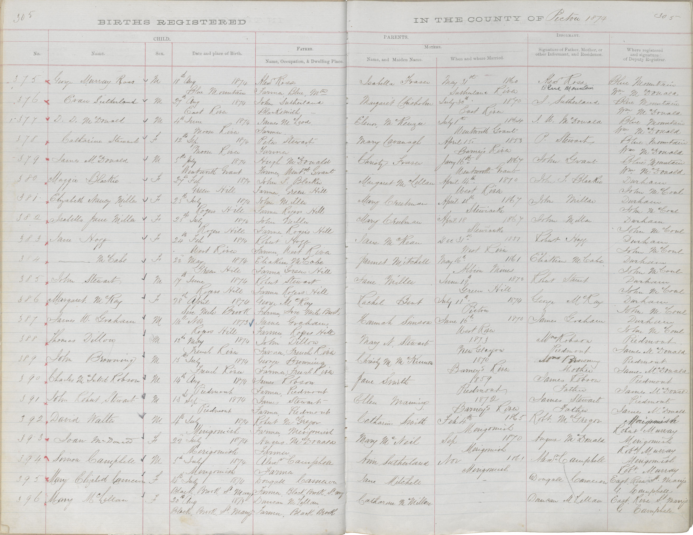 Birth Registration: Year: 1874 book: 1818 page: 305 number: 375