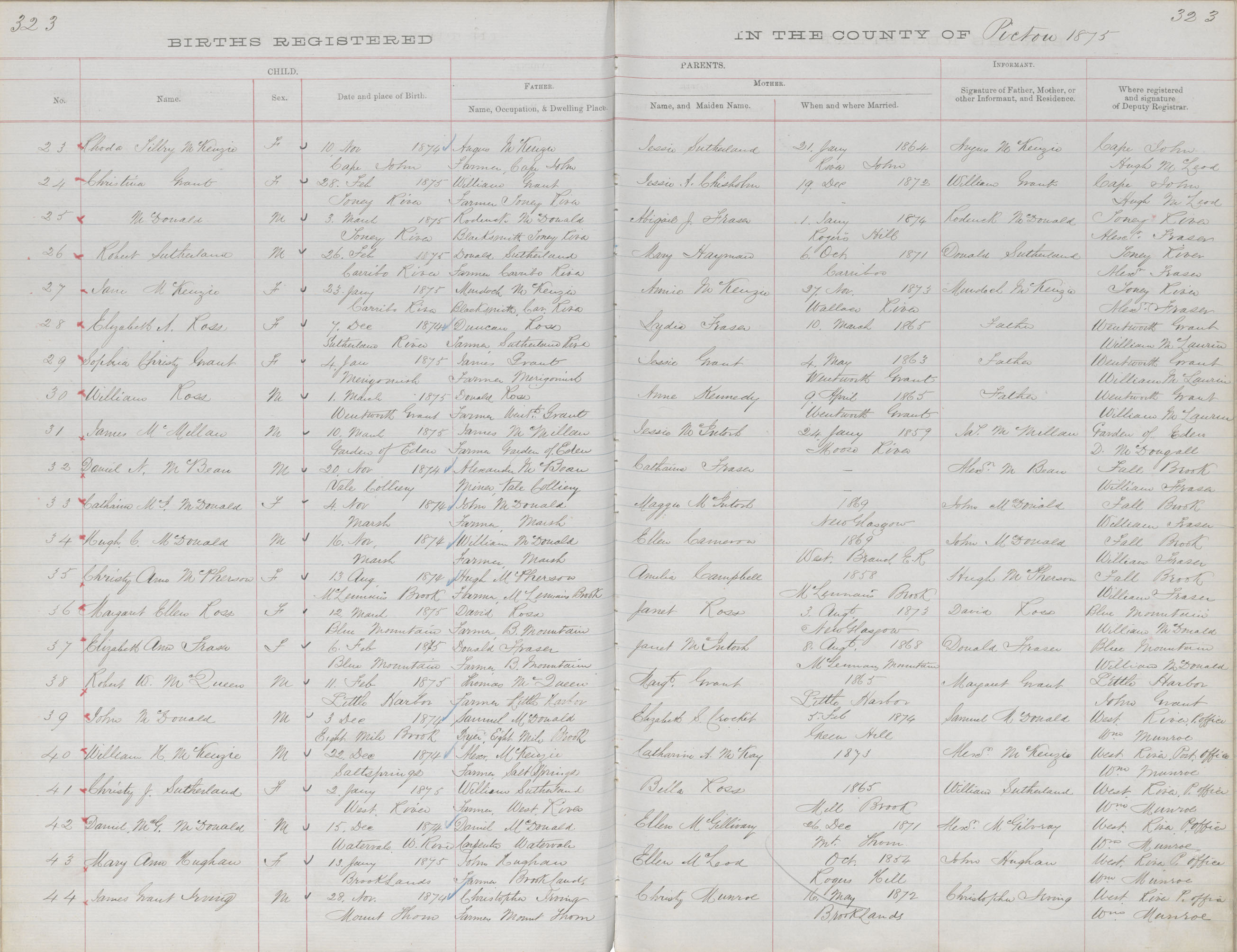 Birth Registration: Year: 1874 book: 1818 page: 323 number: 44