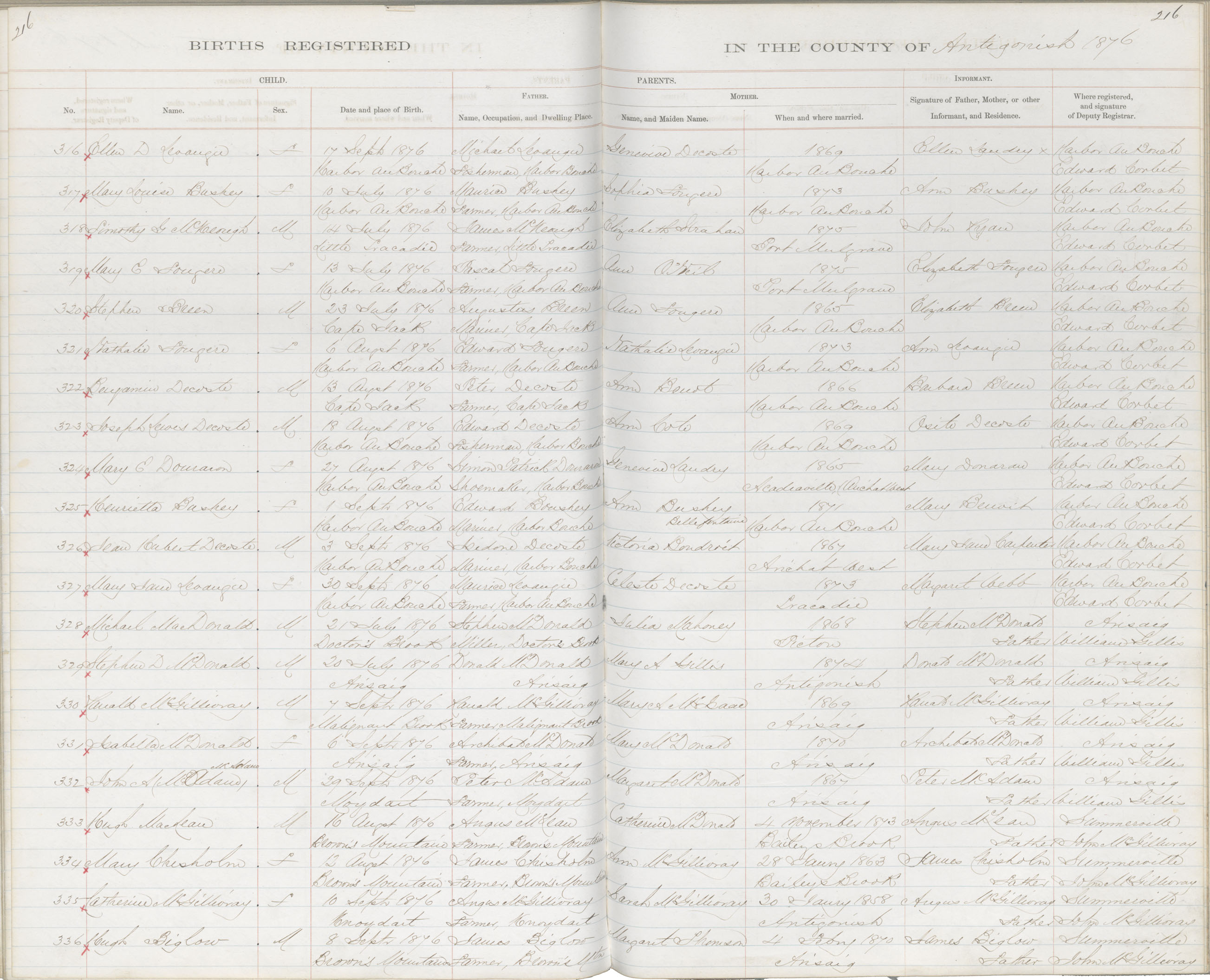 Birth Registration: Year: 1876 book: 1802 page: 216 number: 316