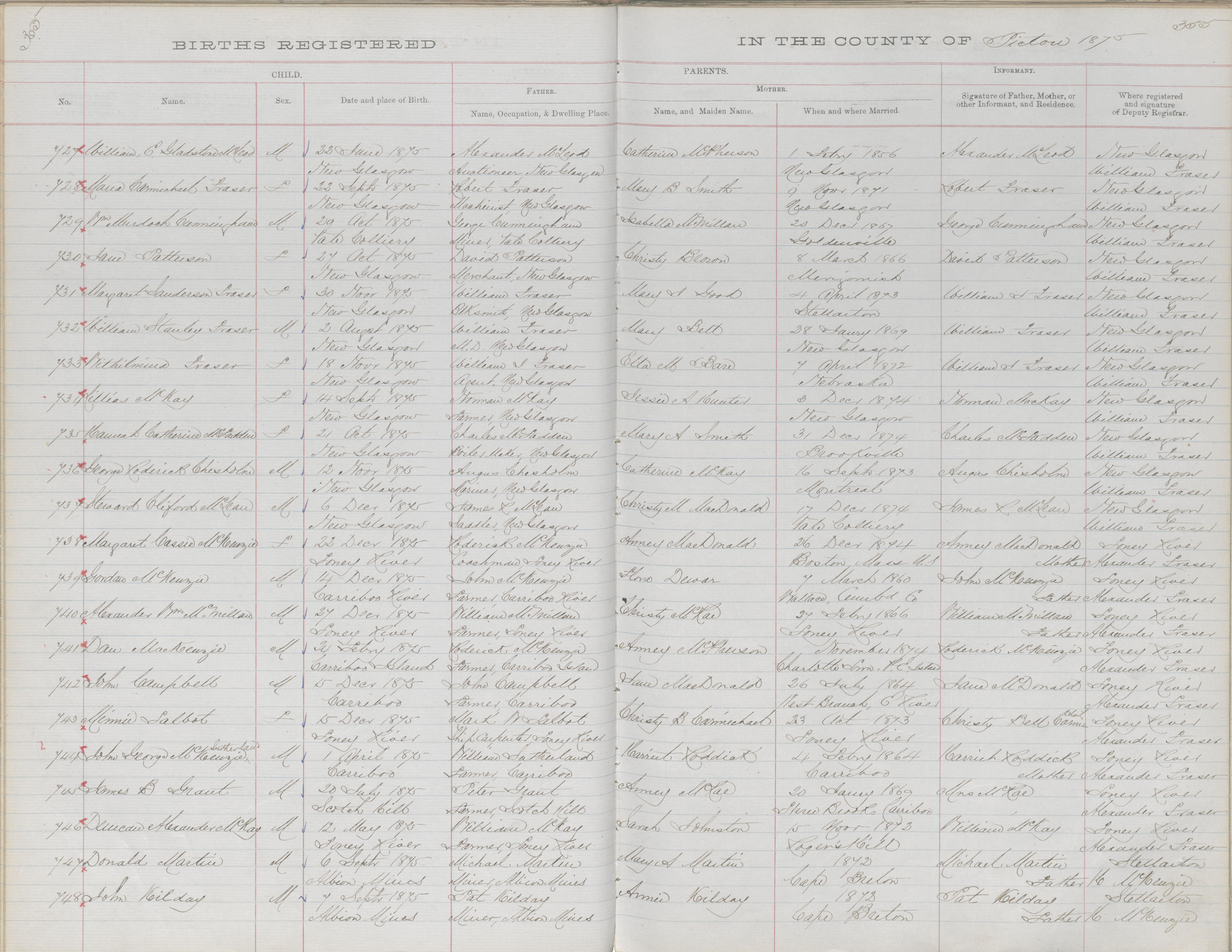 Birth Registration: Year: 1875 book: 1818 page: 355 number: 748